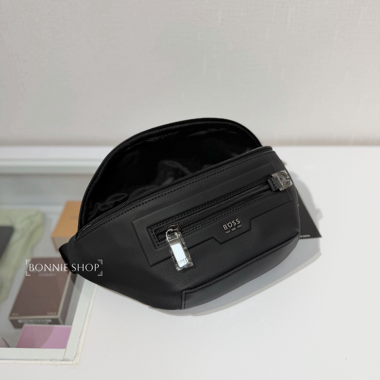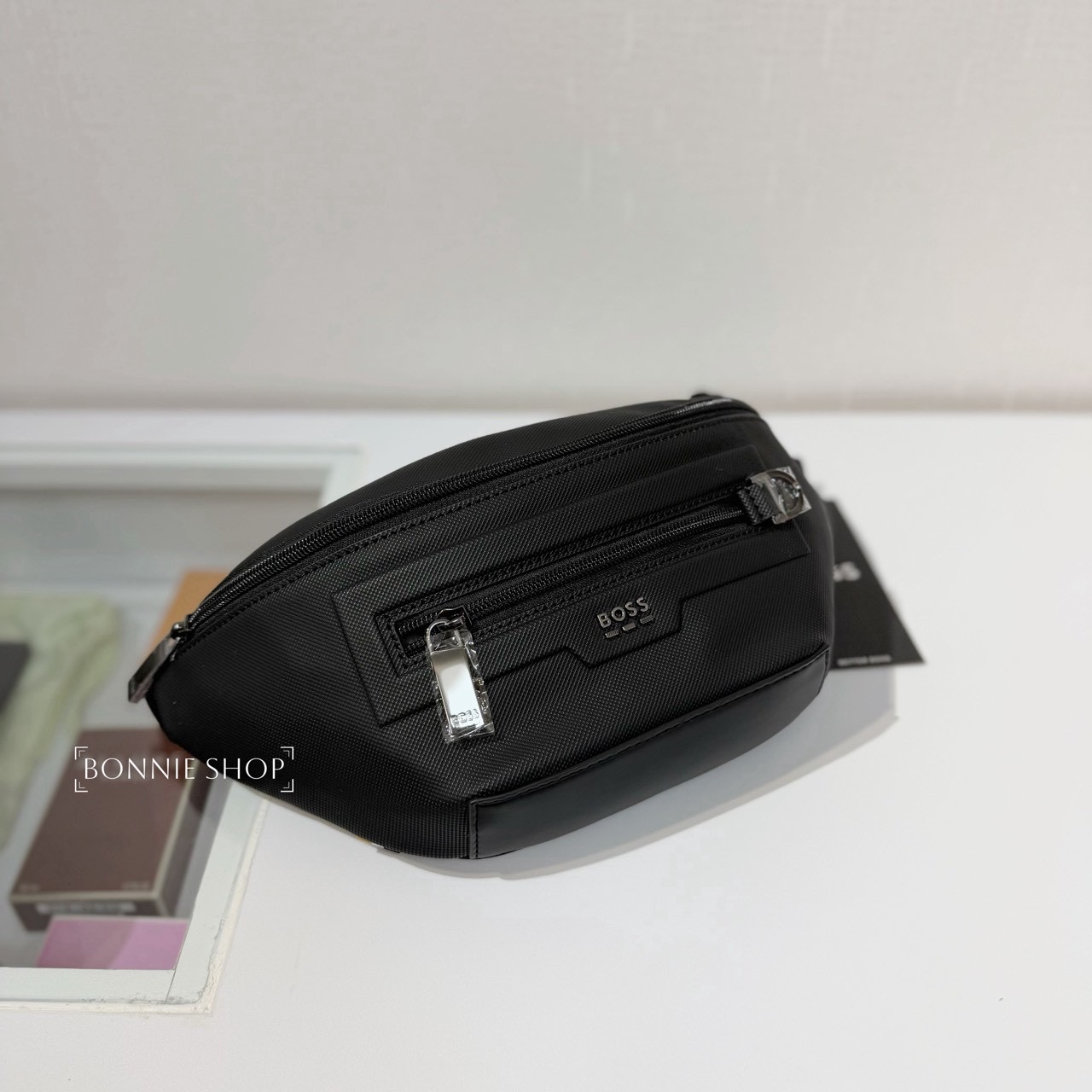 -Hugo Boss 新款立體鐵標字體腰包