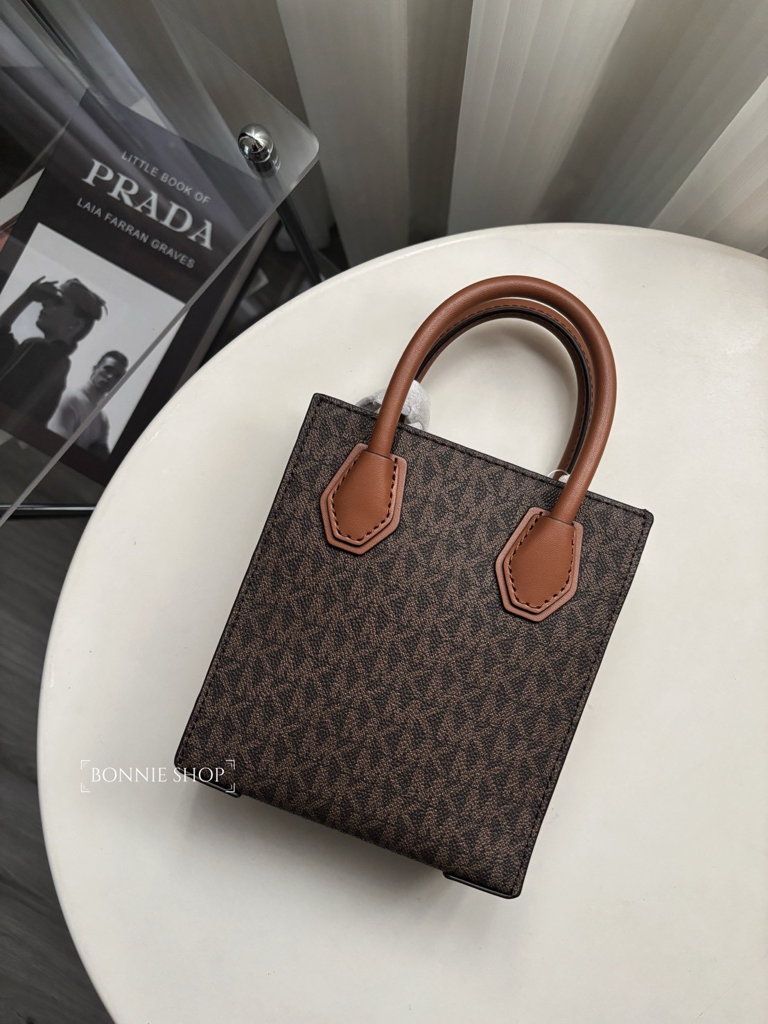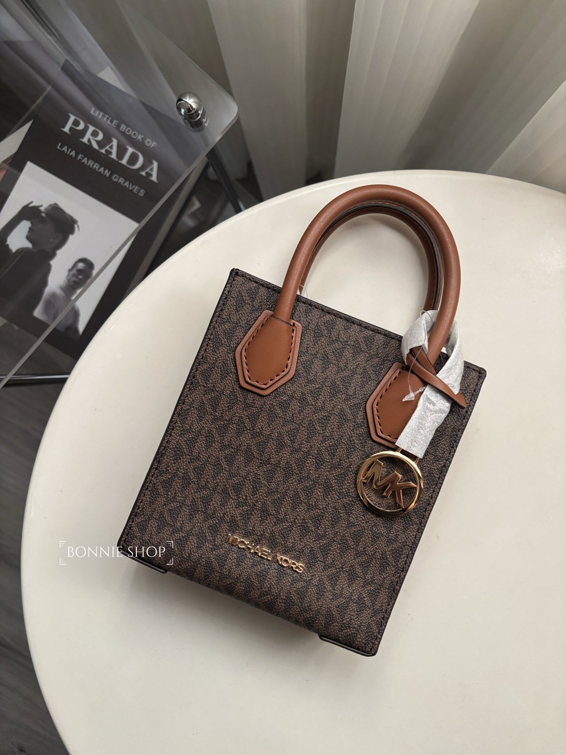 -Michael Kors MK Mercer咖色老花琴譜包