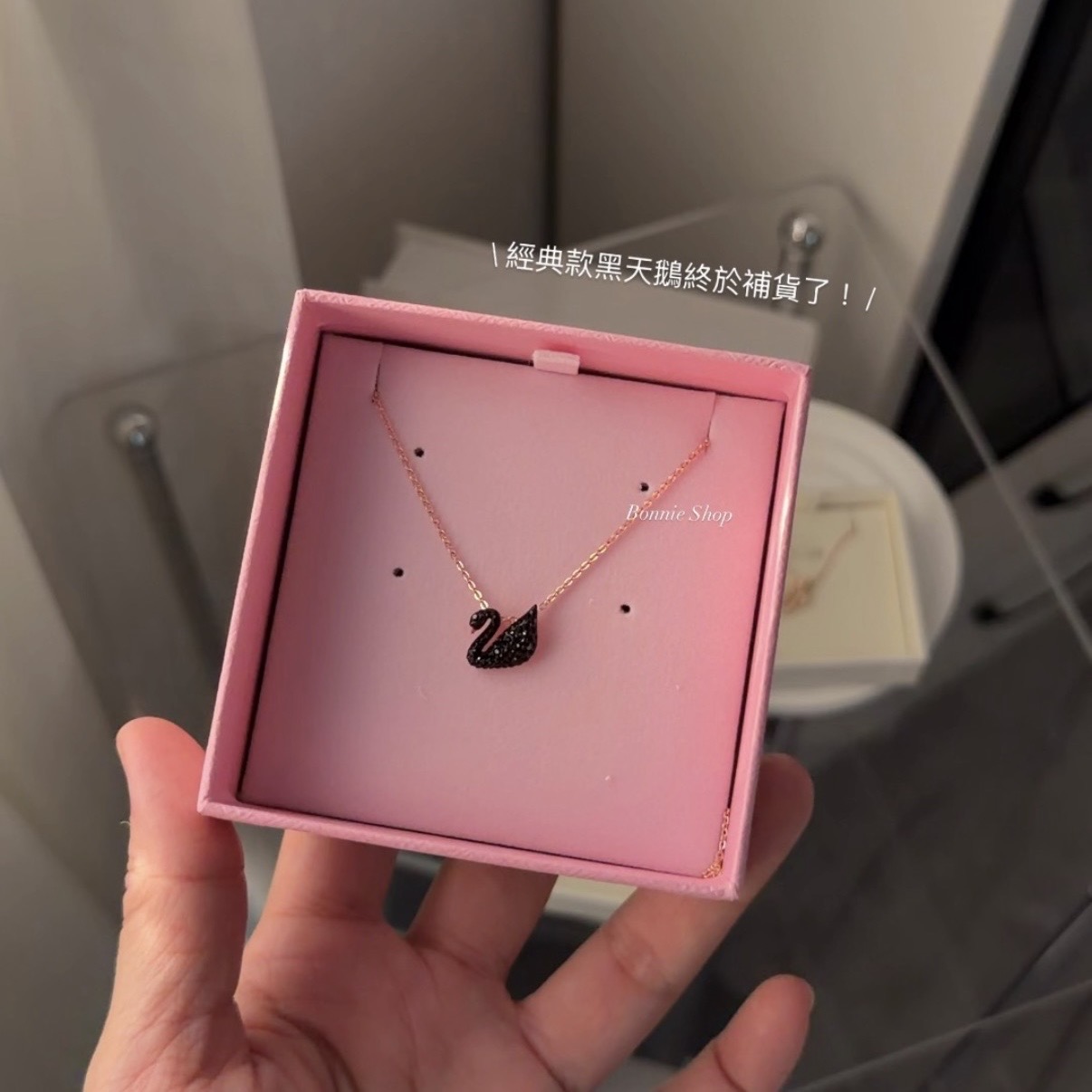 -Swarovski 小款黑天鵝玫瑰金項鍊