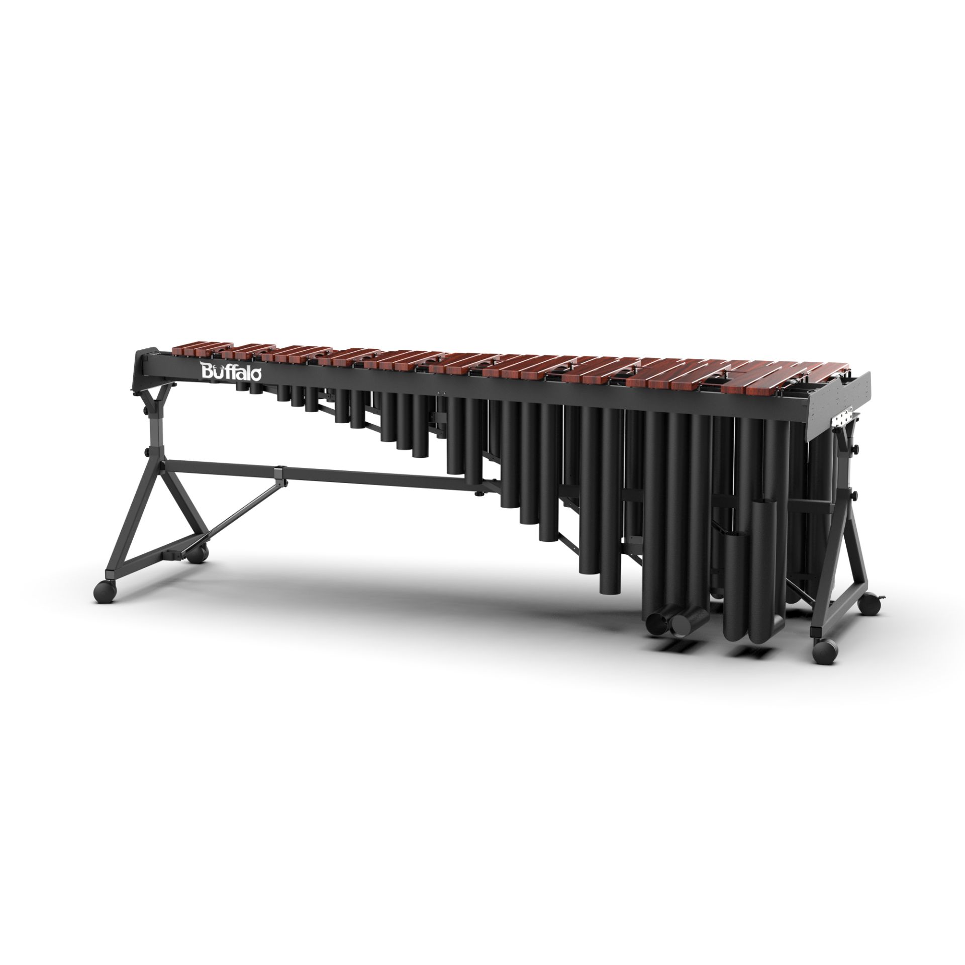 TENUTO系列木琴皆為圓形鋁合金共鳴管,能夠創造出渾厚飽滿的共鳴效果,低音部C2-B2音域為可調式的共鳴管,演奏家可以根據溫度與環境的變化,將共鳴管調整至最適合當下使用的狀態。