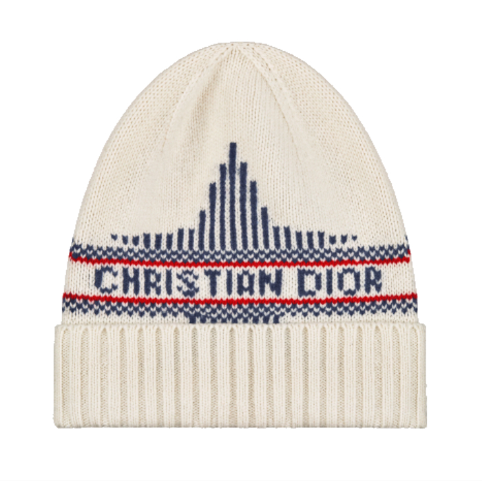 這款白色 3 色軟帽是 DiorAlps 限量系列的作品之一,配以 Christian Dior 先生的幸運星設計,並綴以 Dior Star 主題圖案。