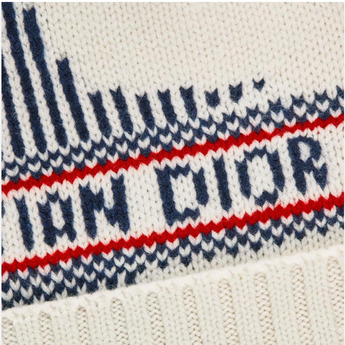 此款式以羊毛和羊絨嵌花織製作,綴以「CHRISTIAN DIOR」標誌飾帶。