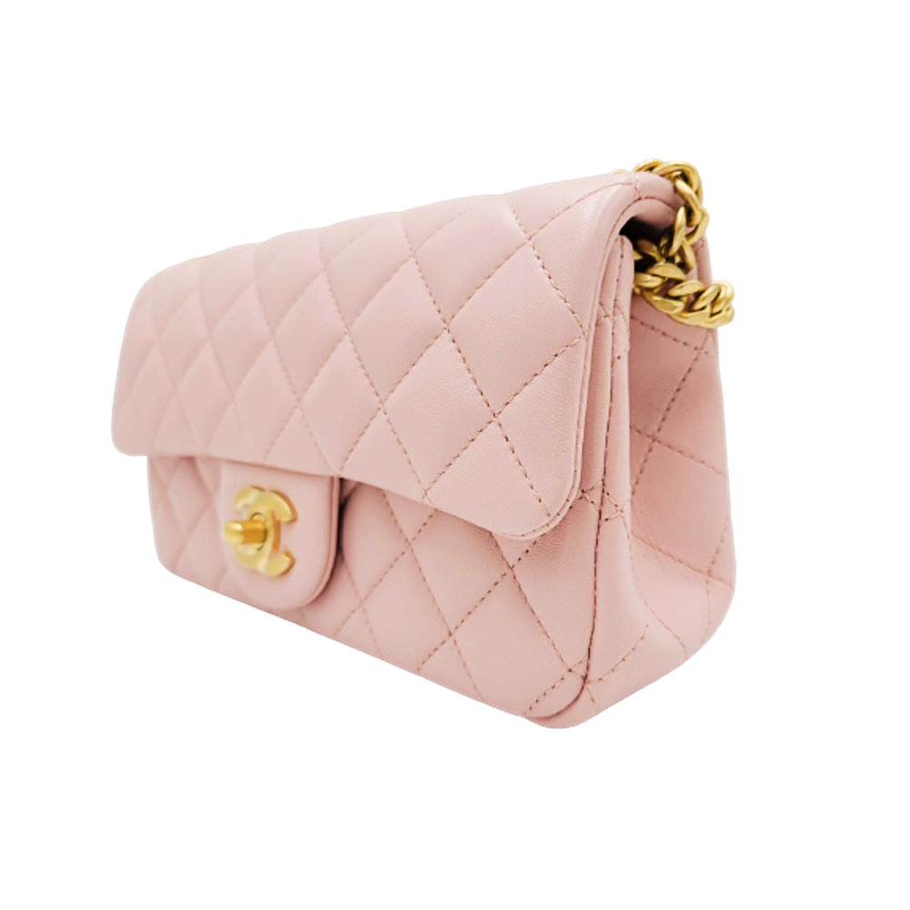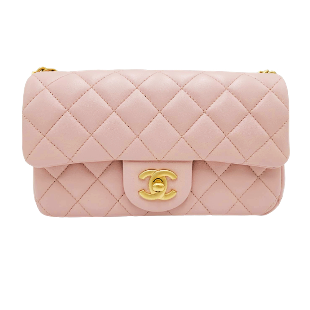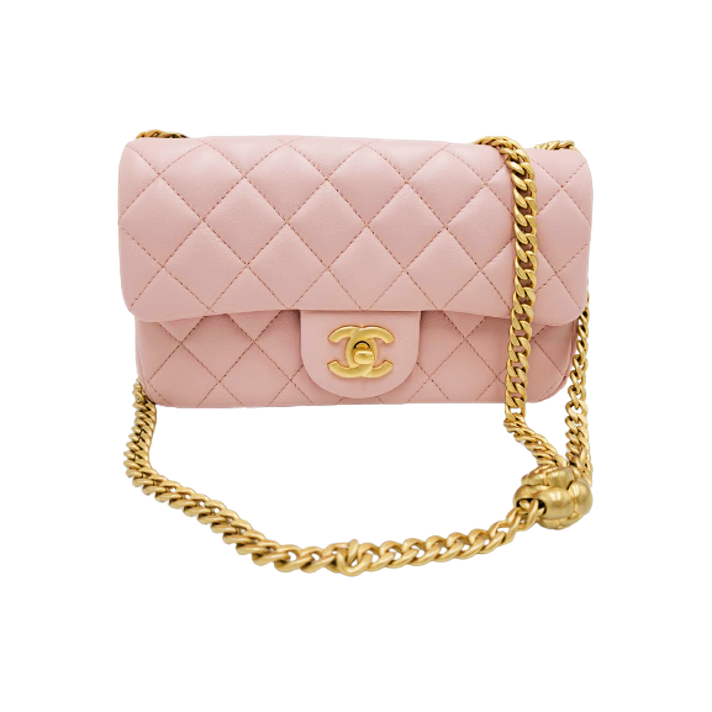 香奈兒 CHANEL 晶片新款 經典雙C LOGO菱格紋小羊皮山茶花調節釦斜背包 (粉色)AS4041B10716NN267