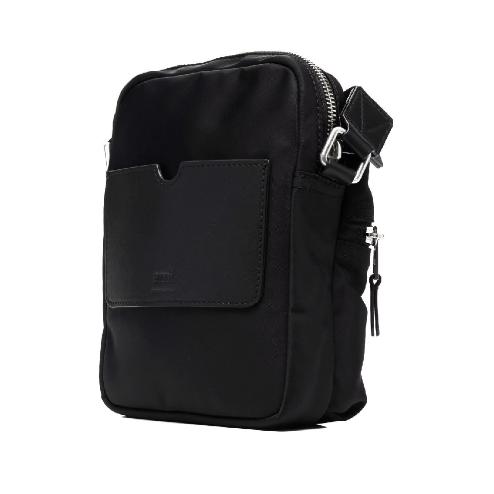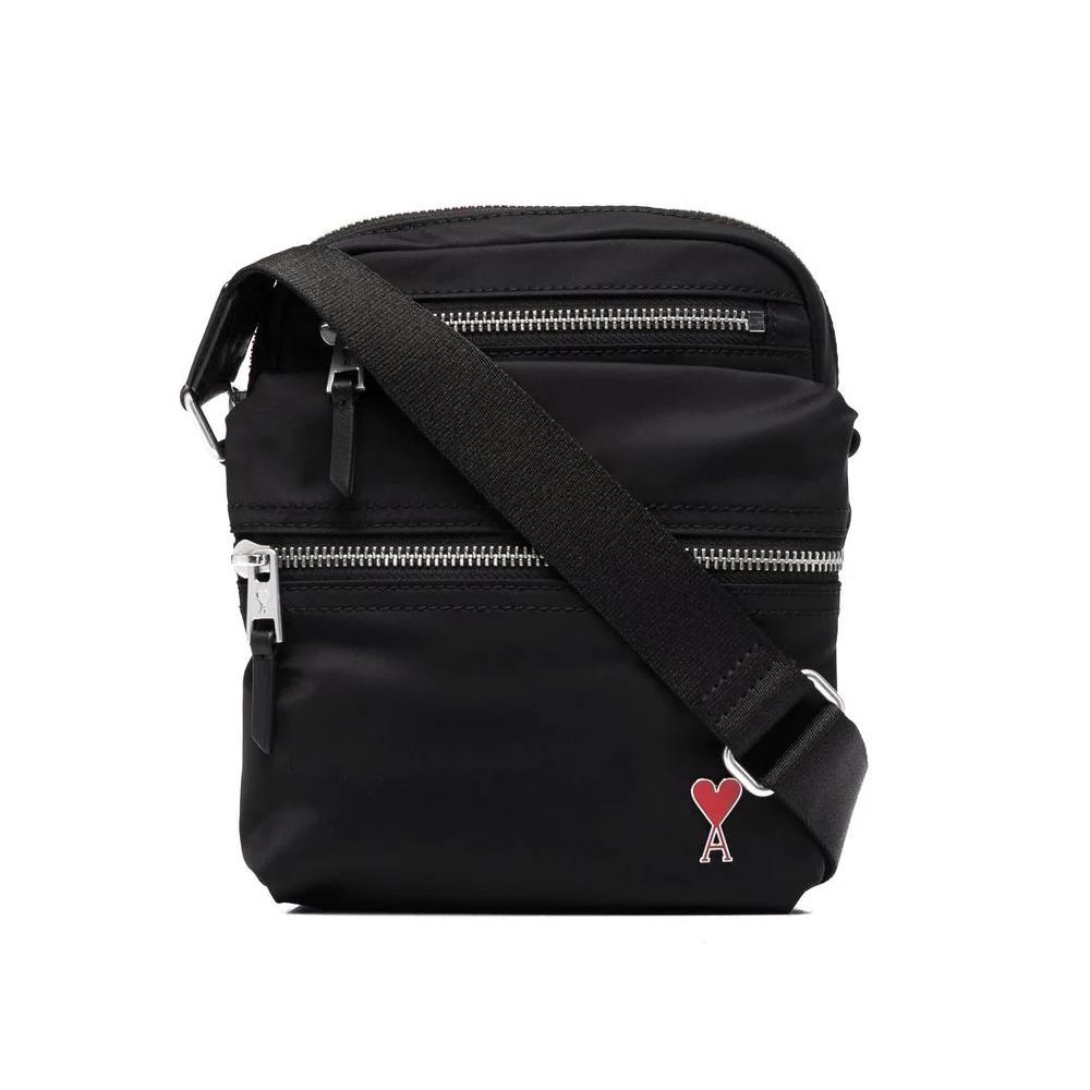 AMI PARIS 金屬品牌LOGO 尼龍斜背包 黑色 ULL157902 001