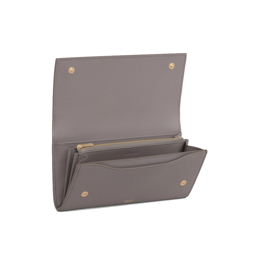CELINE 經典燙金LOGO小牛皮長夾 大象灰色 10B563BEL.10BL