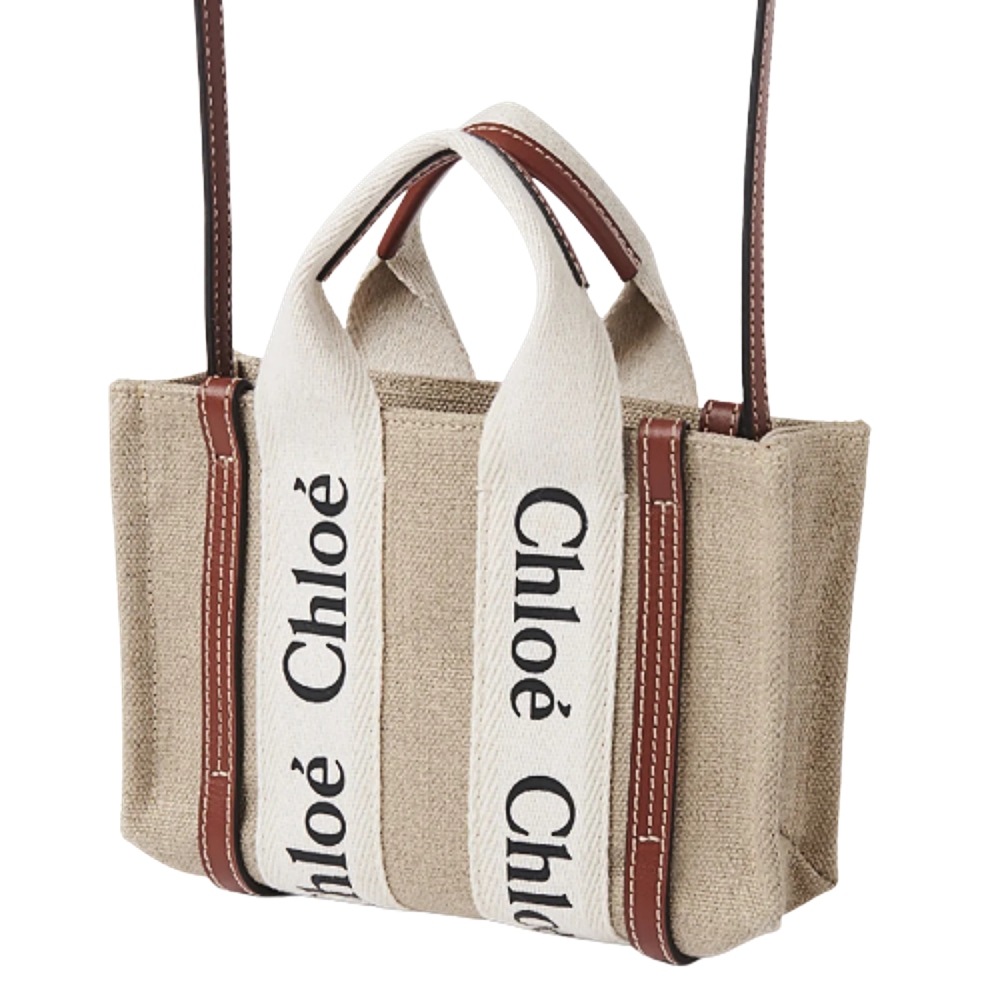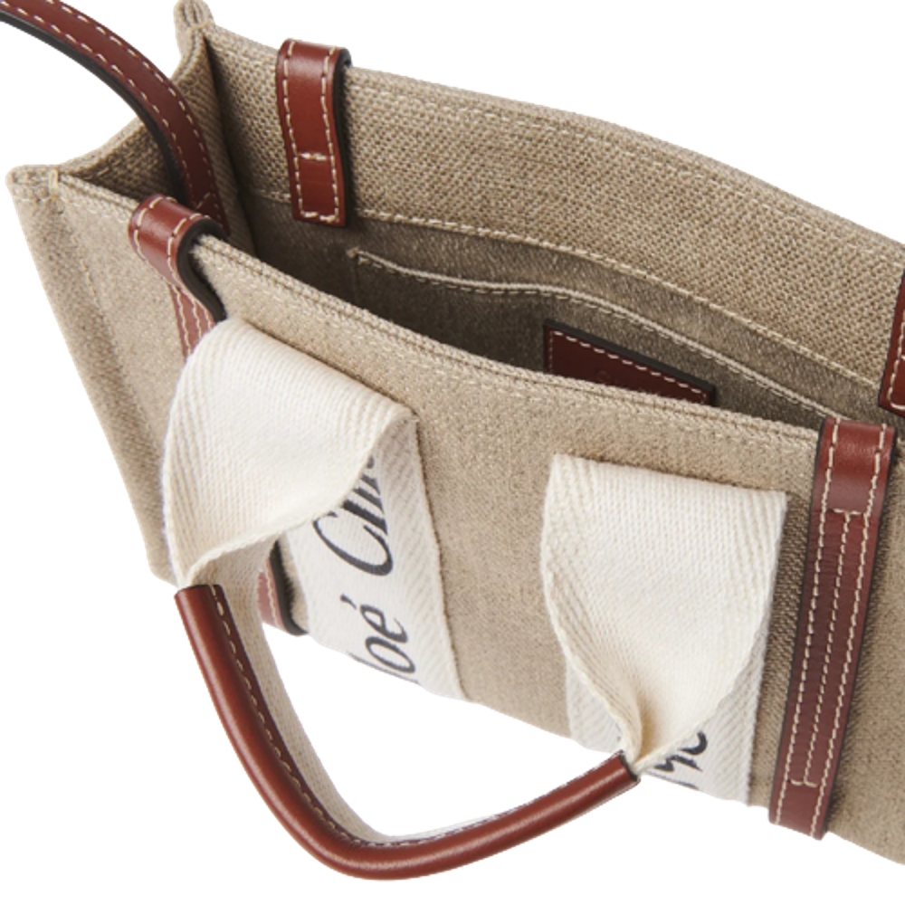 Chloe 棉質帆布和閃亮小牛皮飾 Woody 絲帶托特包