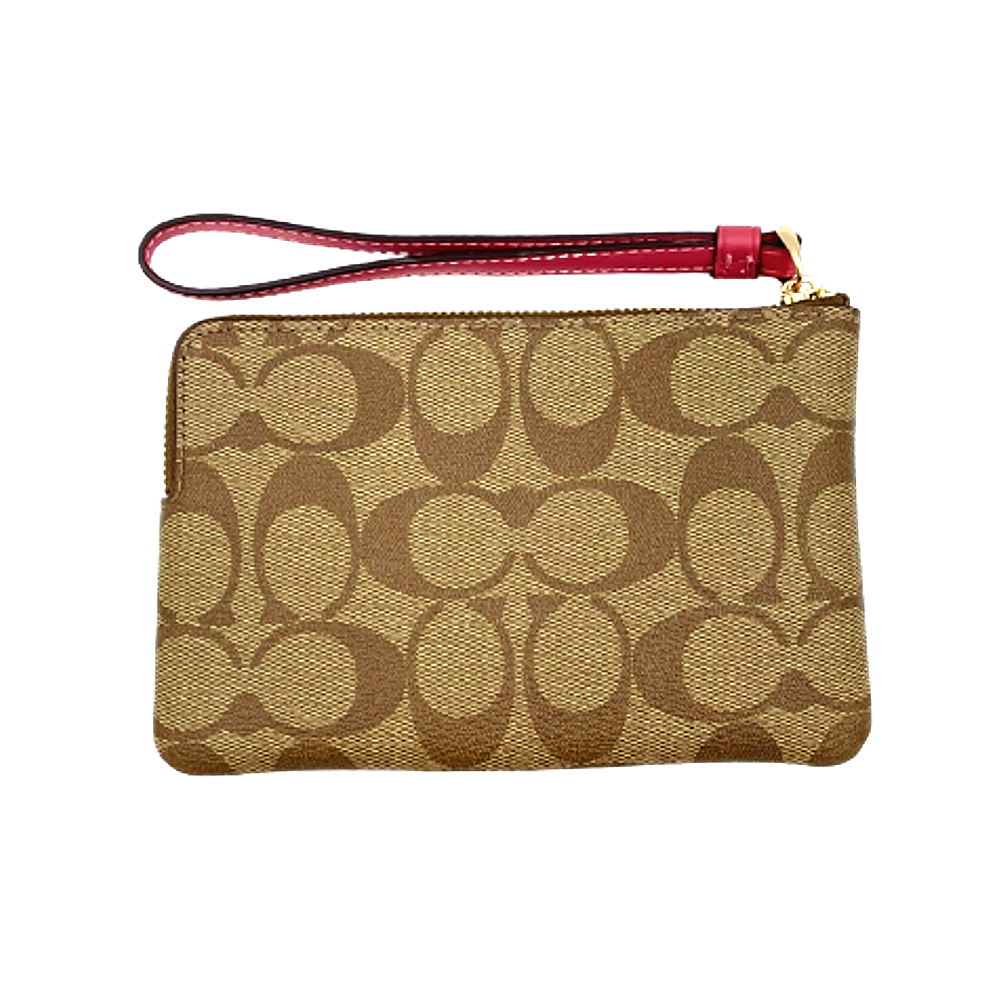 COACH 雙C大LOGO 手拿包/零錢包 棕+桃紅色 195031391811