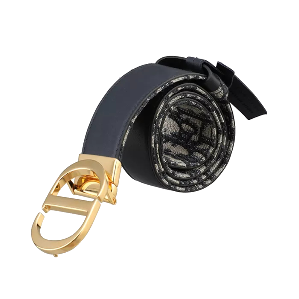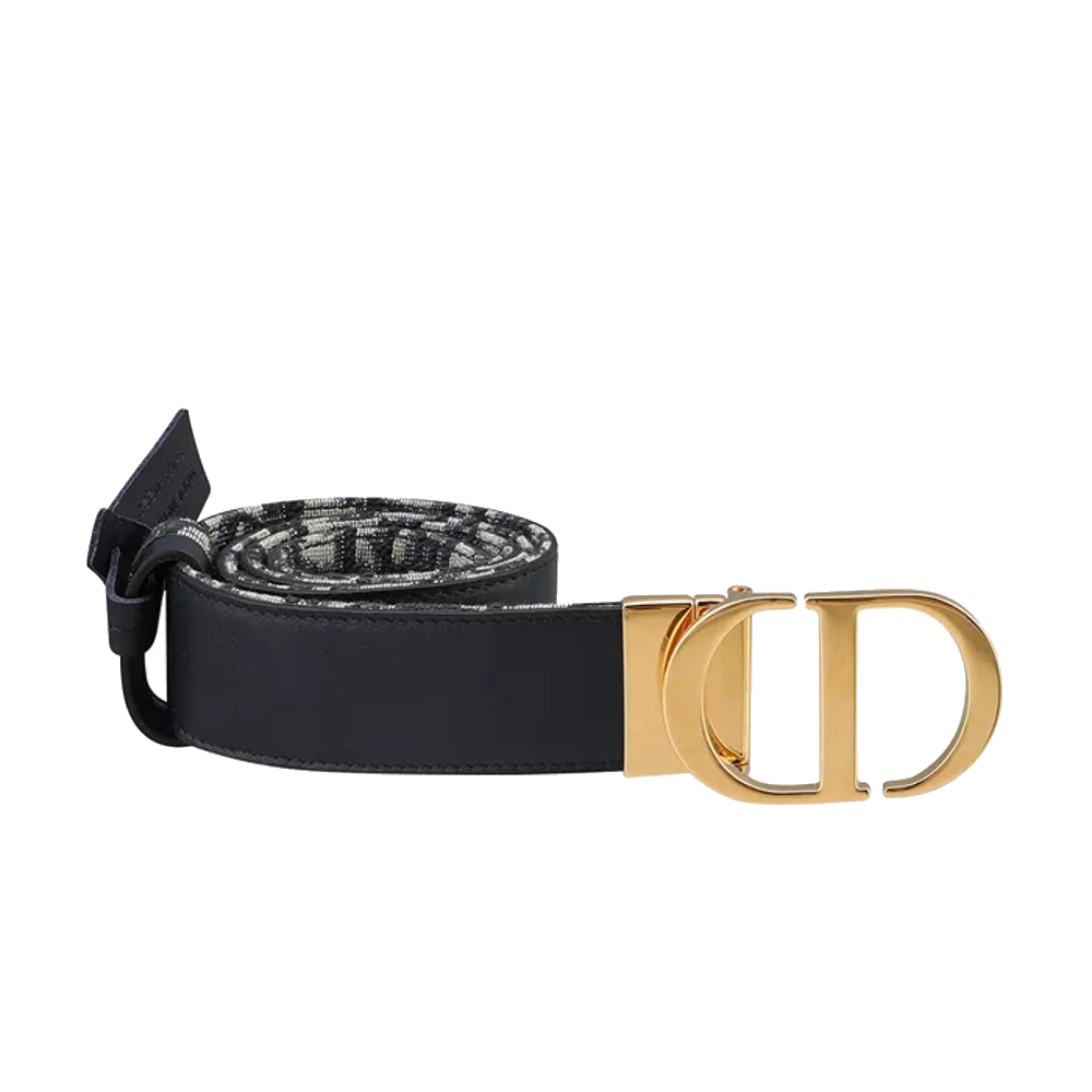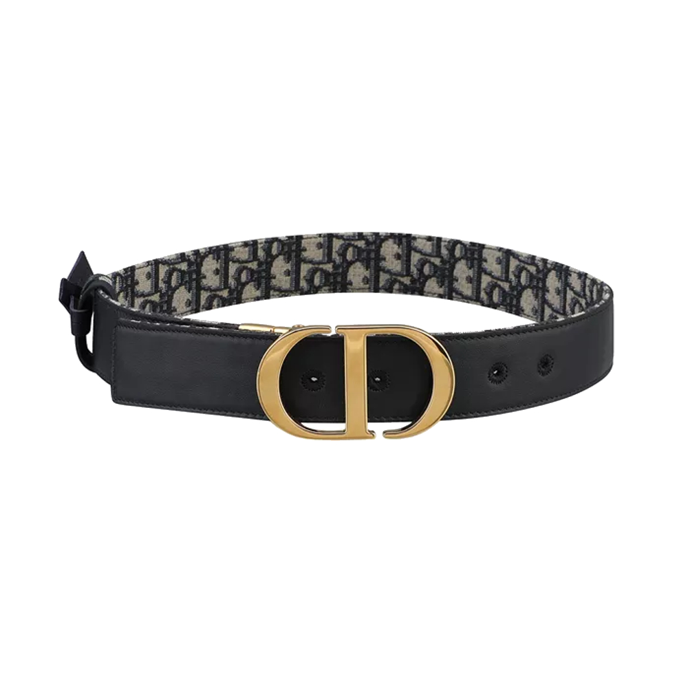Dior迪奧 30 MONTAIGNE 光滑小牛皮75 CM雙面腰帶/皮帶 黑色藍色老花 B0178UWGA_M928
