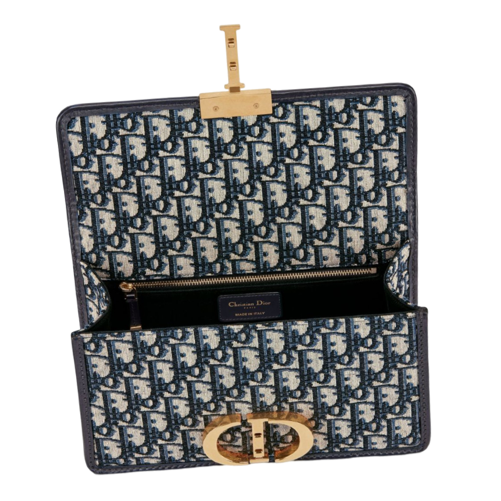 這款手袋以藍色提花精製而成,綴以品牌經典的 Dior Oblique 主題圖案,設計典雅而時尚。