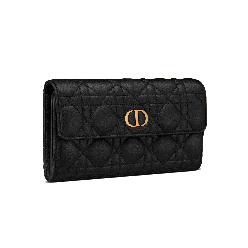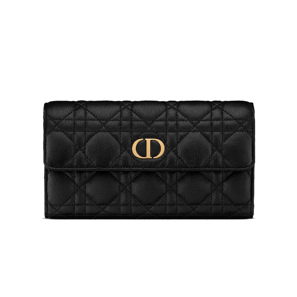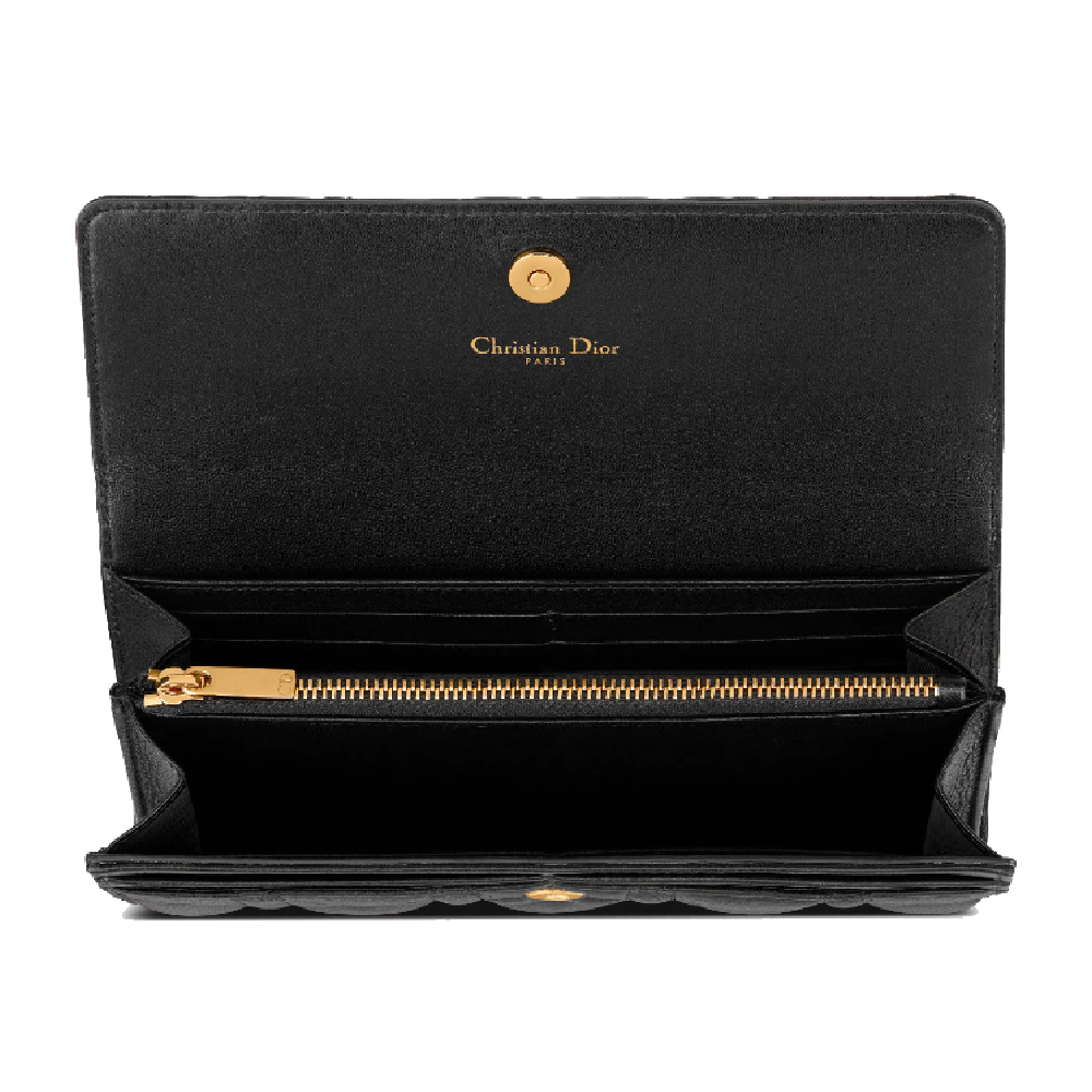 Dior迪奧 CARO Cannage 女款藤格紋圖案小牛皮 長夾 黑色 S5039UWHC_900U