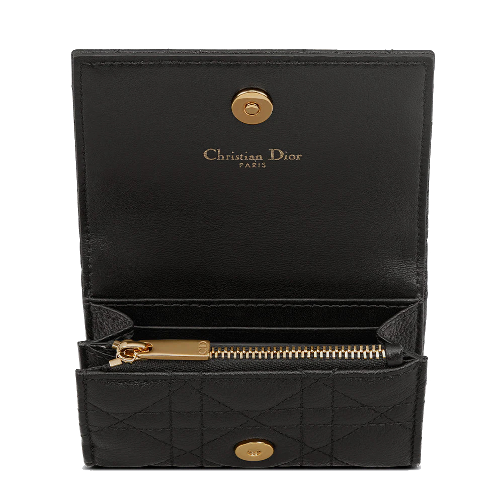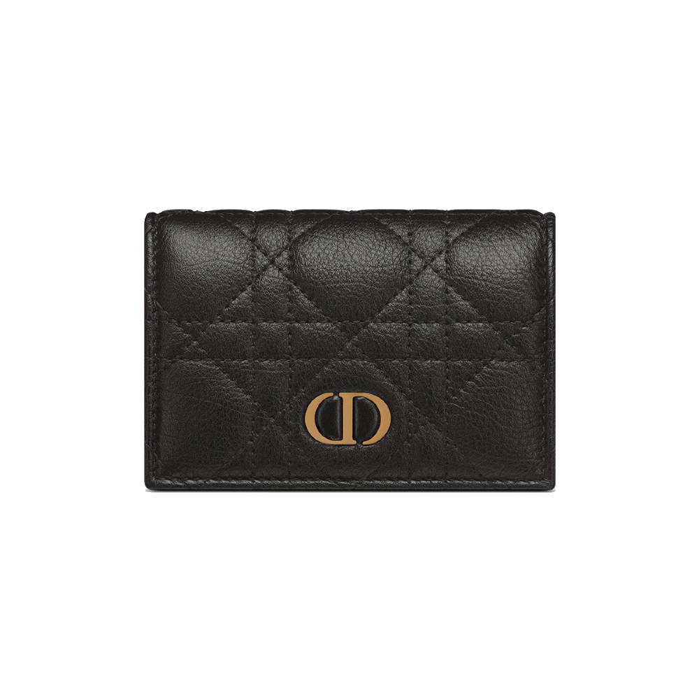 Dior迪奧 CARO Cannage 藤格紋圖案小牛皮 卡夾/卡包 黑色 S5132UWHC_900U