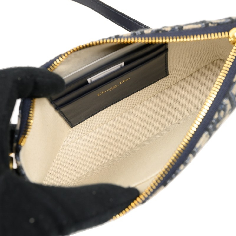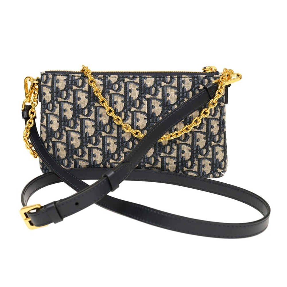 這款手袋以藍色提花精製而成,綴以品牌經典的 Dior Oblique 主題圖案,設計典雅而時尚。