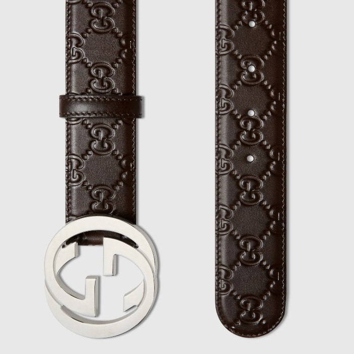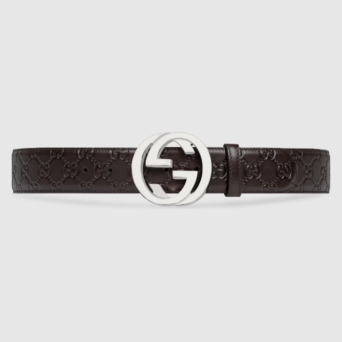 GUCCI 經典雙G扣 皮帶 深咖啡色壓紋銀色扣頭 411924 CWC1N 2140