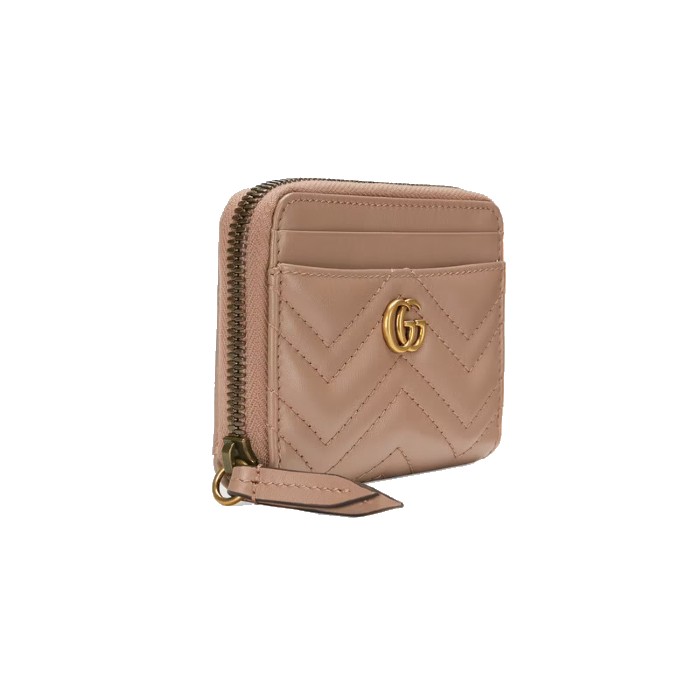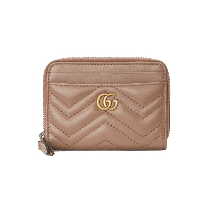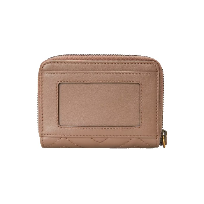 GUCCI 雙G GG Marmont系列 藕粉色真皮拉鍊卡片夾 671772DTDHT5729