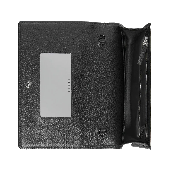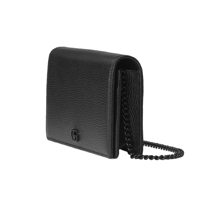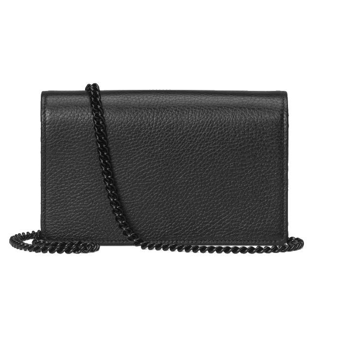這款GG Marmont鏈帶銀包在Aria系列中推出,並採用了永不過時的黑色皮革製作。