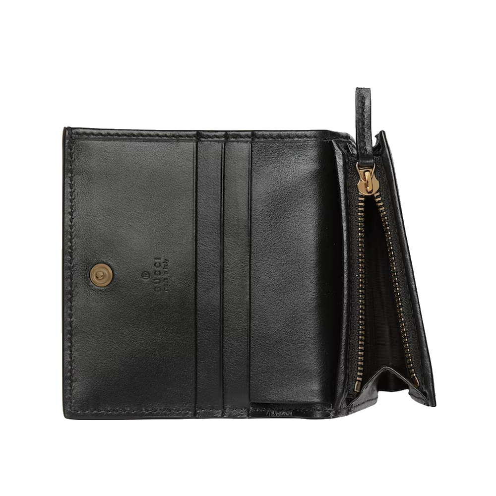 金色雙G,5個卡片夾層,1個鈔票隔層,拉鏈內袋,按扣扣合