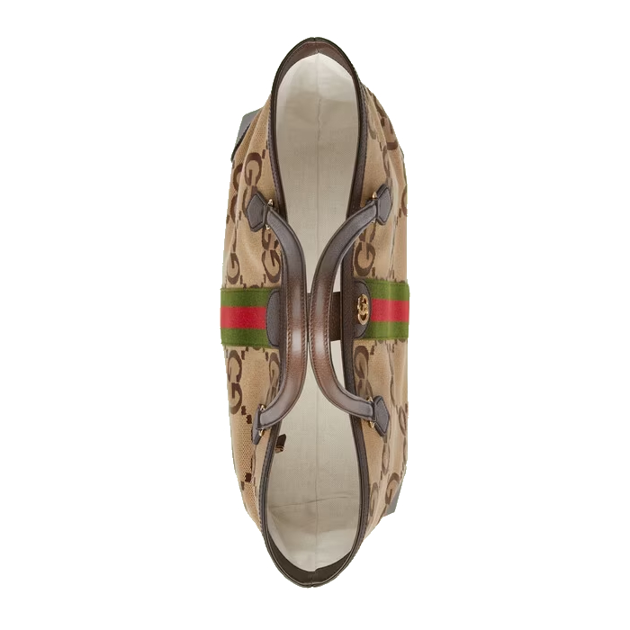 這款Ophidia中型手提袋選用代表Guccio Gucci名字首字母的GG帆布呈現,並以大型尺寸演繹GG圖案。