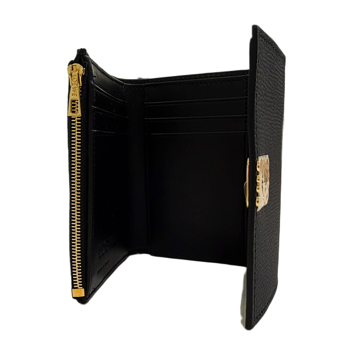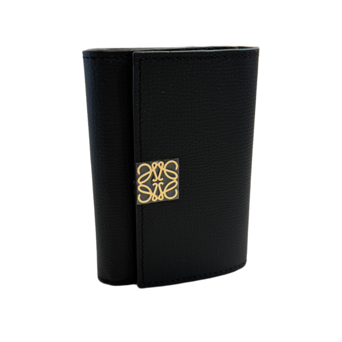 【LOEWE】小型鵝卵石紋小牛皮 Anagram Small 直式錢包 - 黑色 - C821S33X12 1206