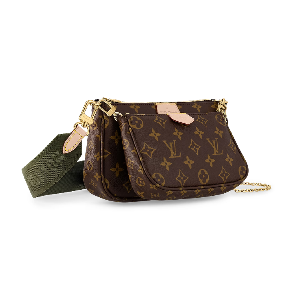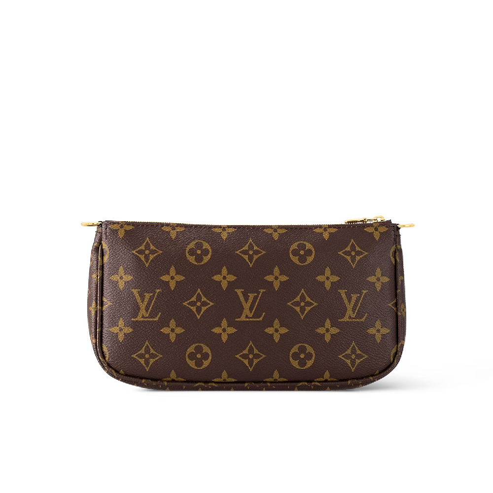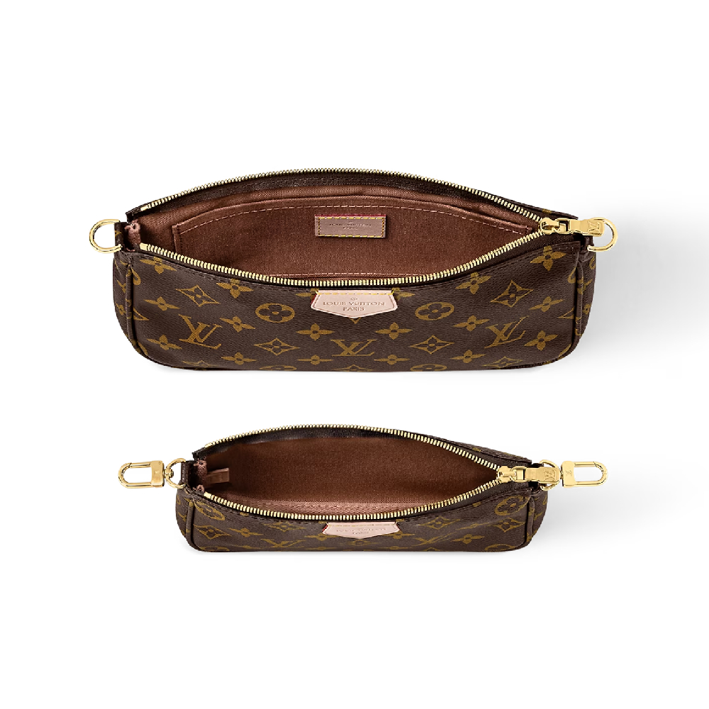 這款Multi Pochette Accessoires是一款混合式斜背袋,設有多個口袋和隔層,結合隨身包、迷你隨身包和圓形零錢包於一身。
