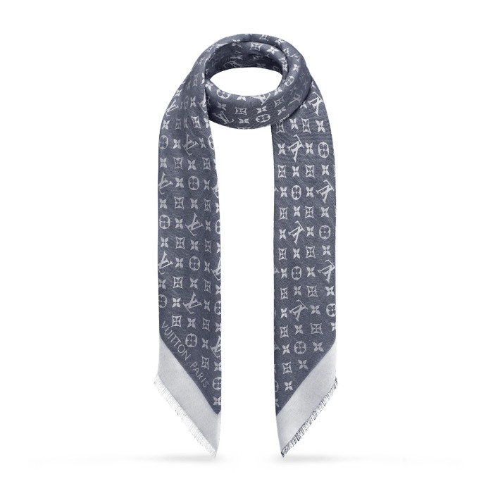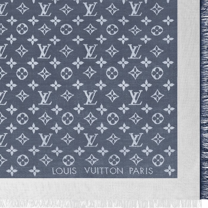 這款奢華披肩最適合日常使用,以柔軟的Monogram Denim縫製,既細緻又柔美,全面綴以提花Louis Vuitton字樣和Monogram圖案。