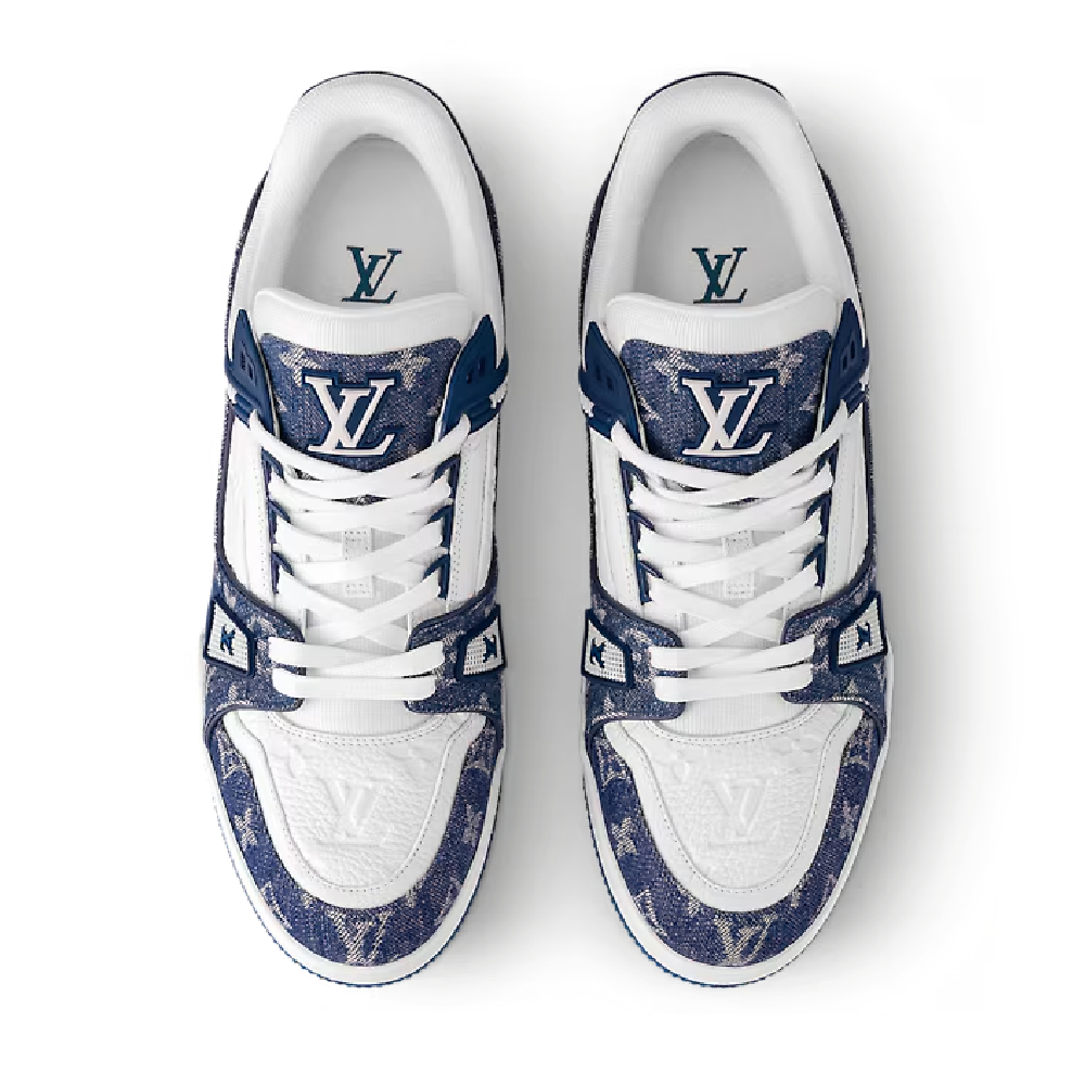 這款標誌性的LV Trainer運動鞋由路易威登藝術總監Virgil Abloh設計,於今季以Monogram牛仔布及Monogram壓花粒面小牛皮重新演繹。