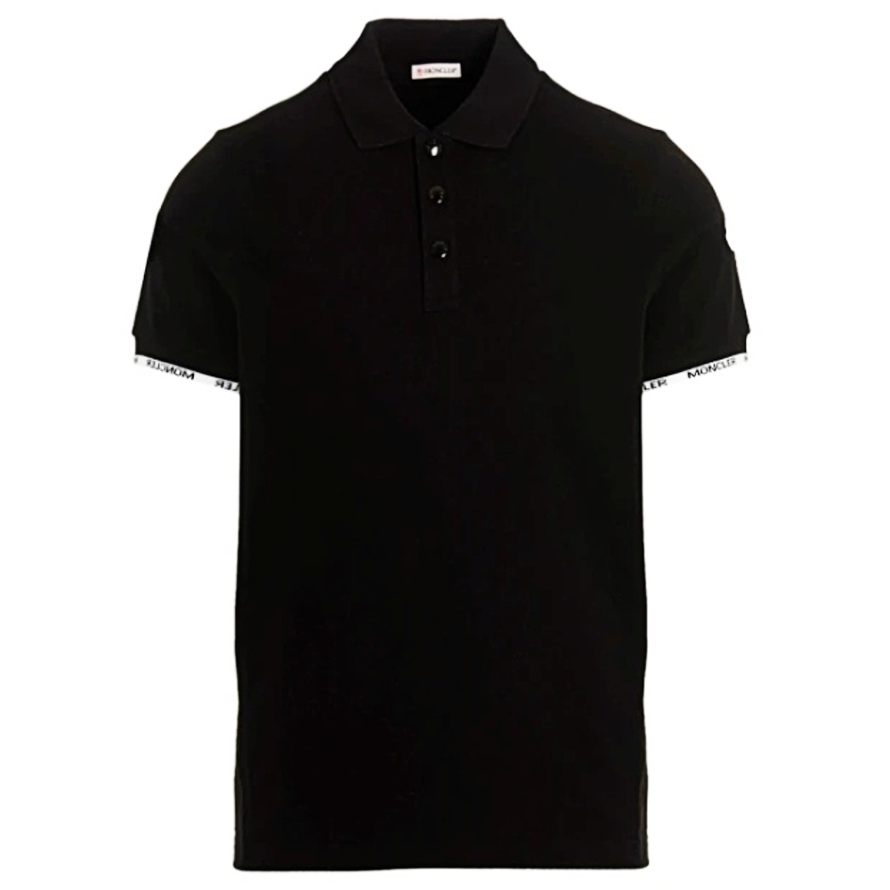 MONCLER男款 袖子文字 左臂品牌LOGO 短袖POLO衫 黑色S號 8A0001484556 999