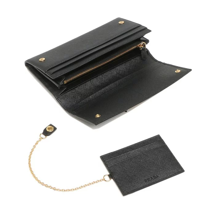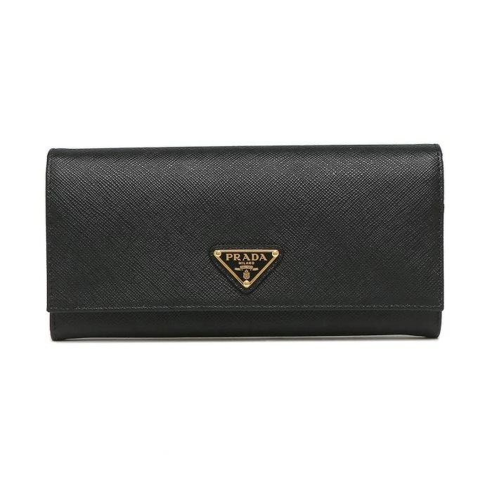 PRADA SAFFIANO TRIANGOLO 女款按扣長夾 黑色 1MH132QHH F0002