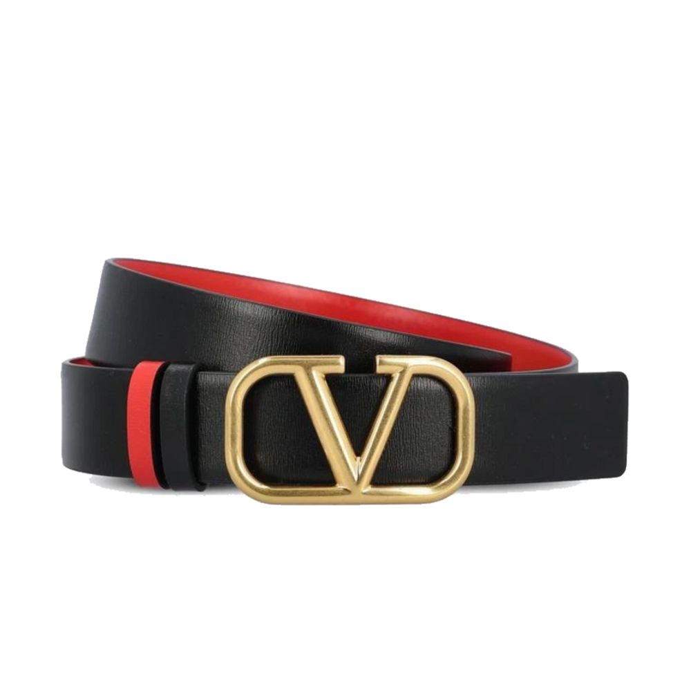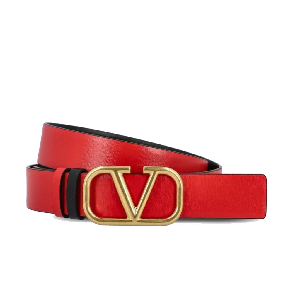 VLogo Signature 光面小牛皮雙面腰带,復古黄銅VLOGO搭扣。
