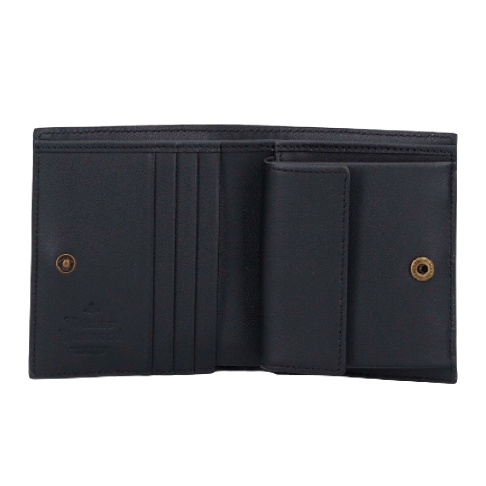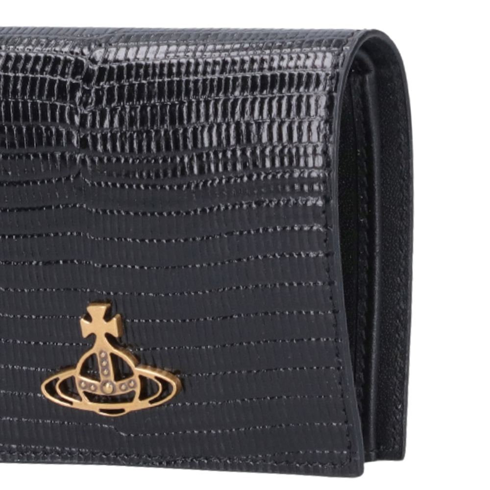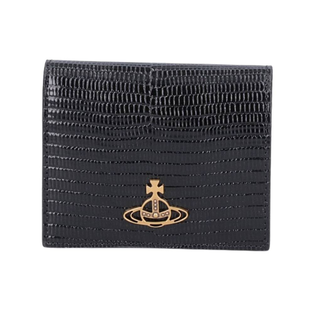 Vivienne Westwood 女款 品牌LOGO 蜥蜴紋皮革按扣短夾 黑色 51010024UL004FLA N401