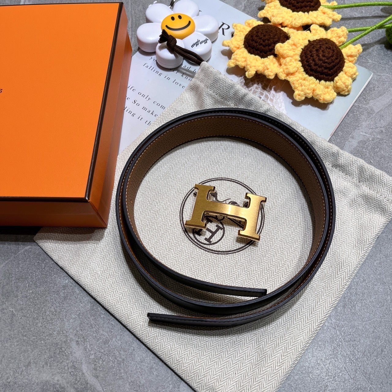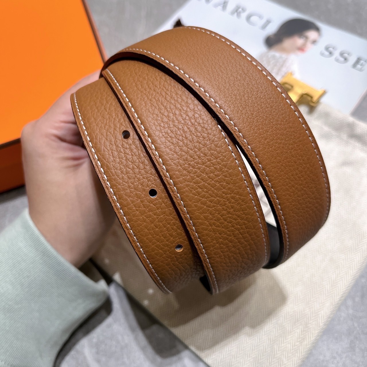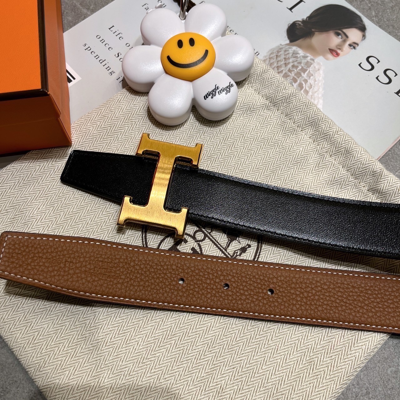 Hermes 皮帶 髮絲金 黑/棕 90長
