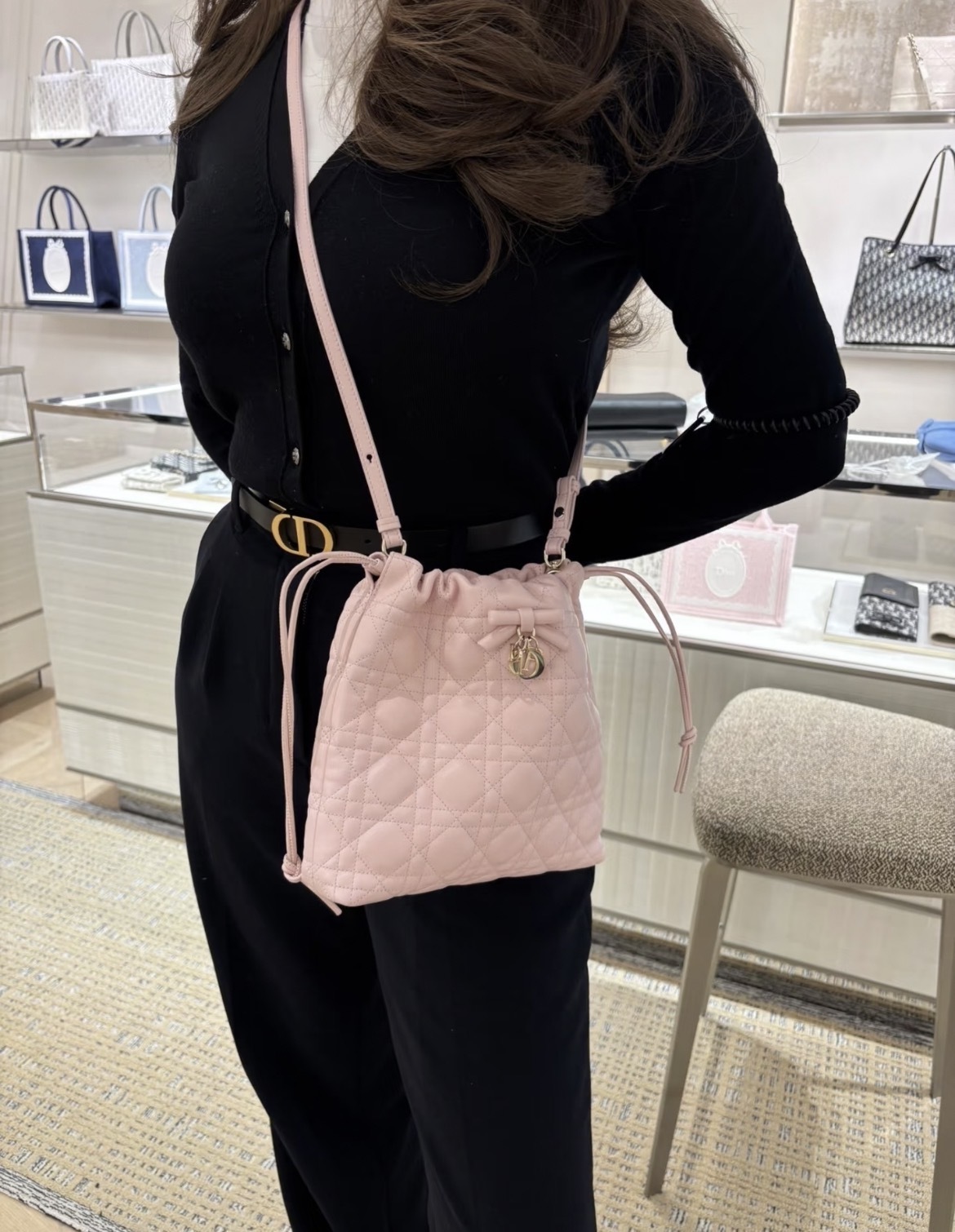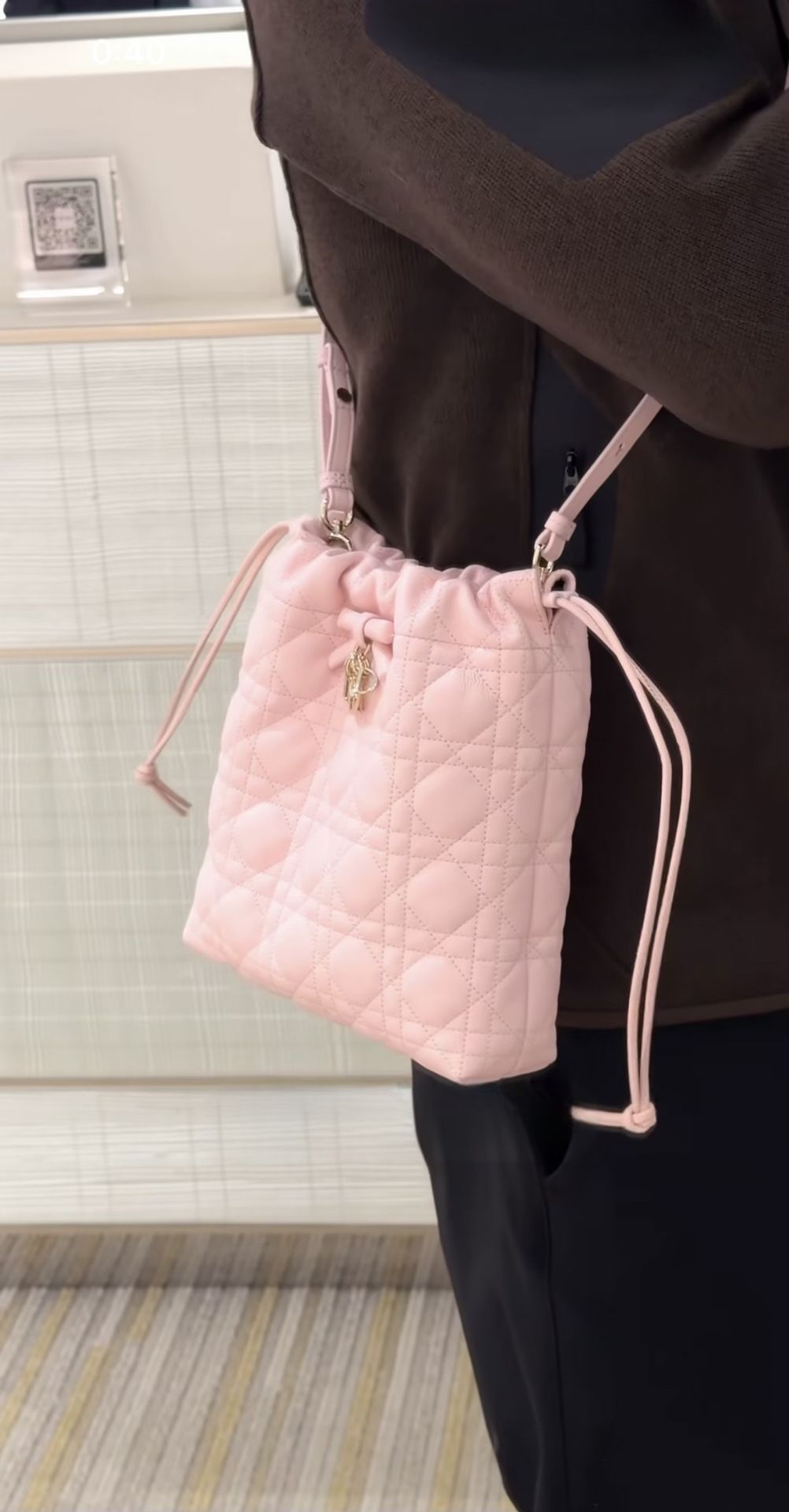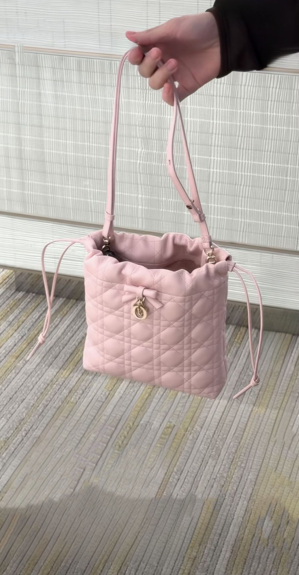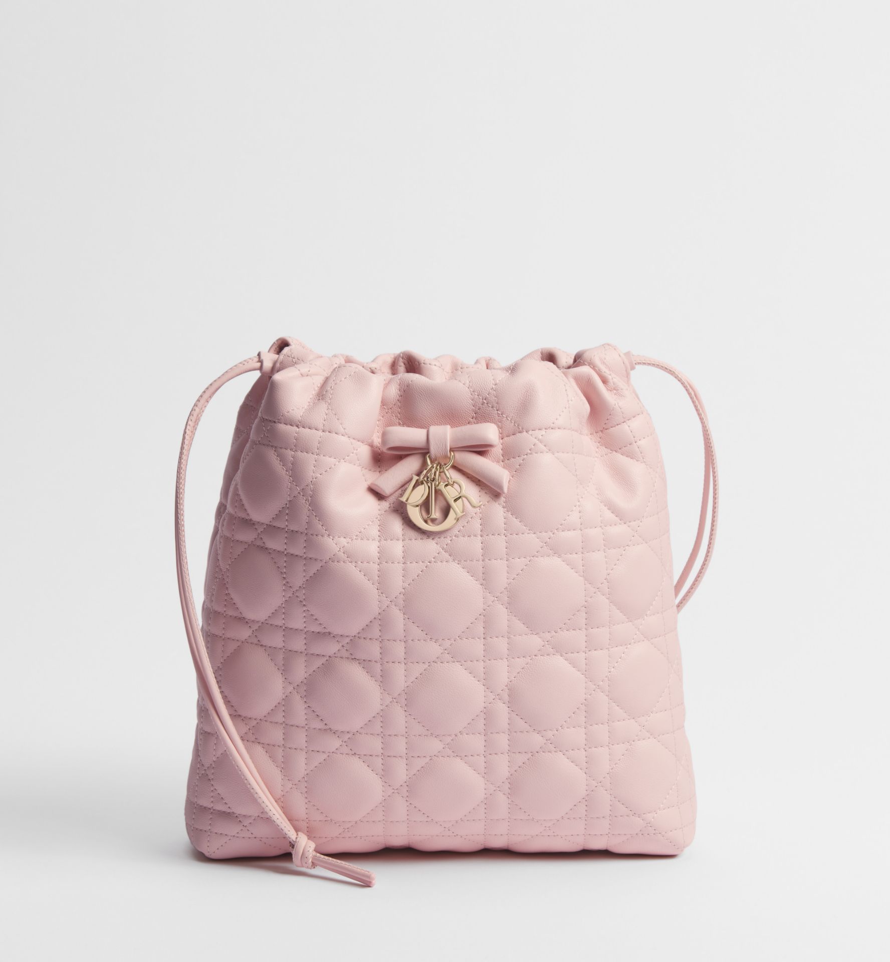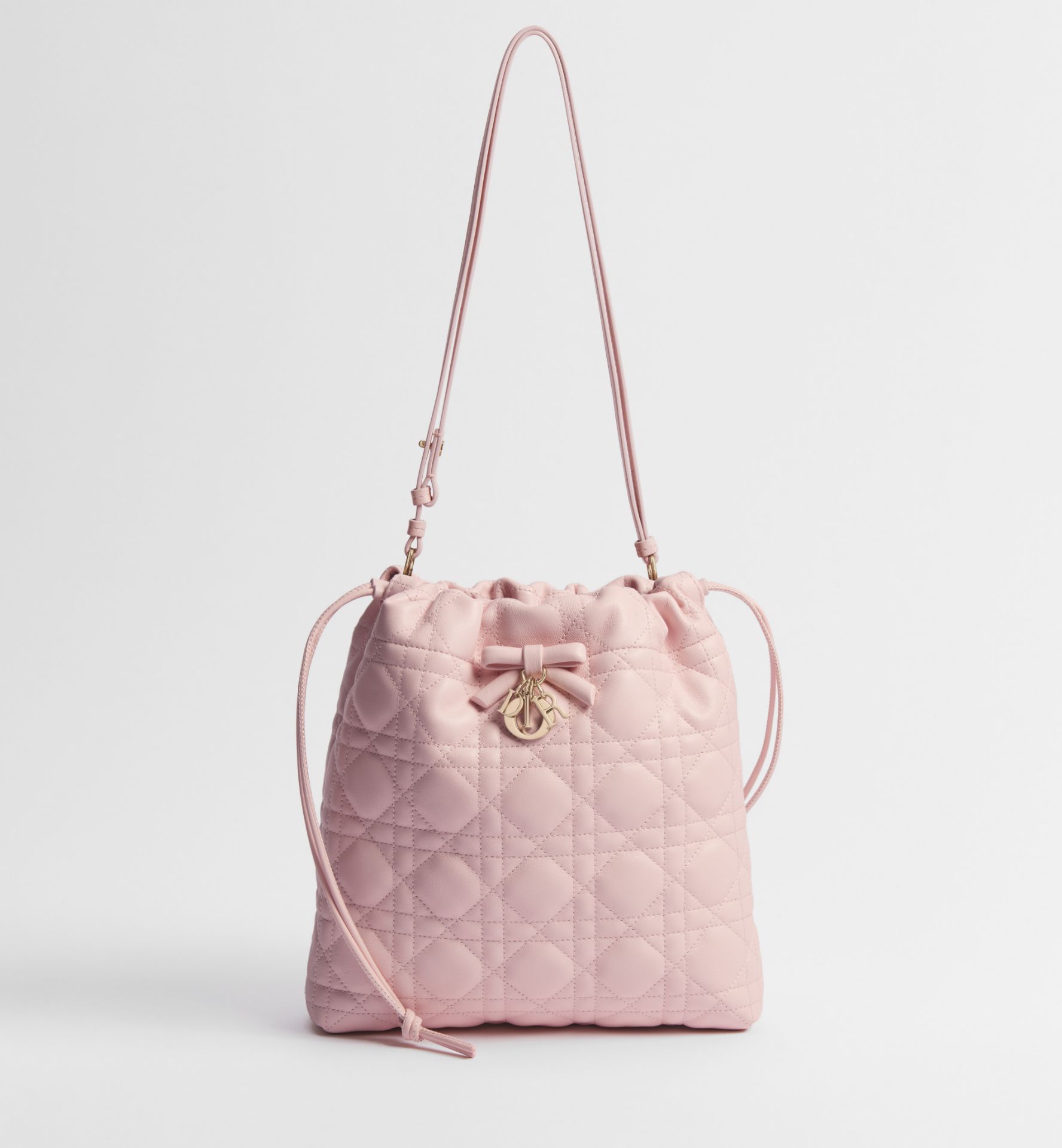 《在台現貨最低特價 最新》Dior Adiorable 淡霧粉色 Cannage 籐格紋小羊皮 迷你水桶包