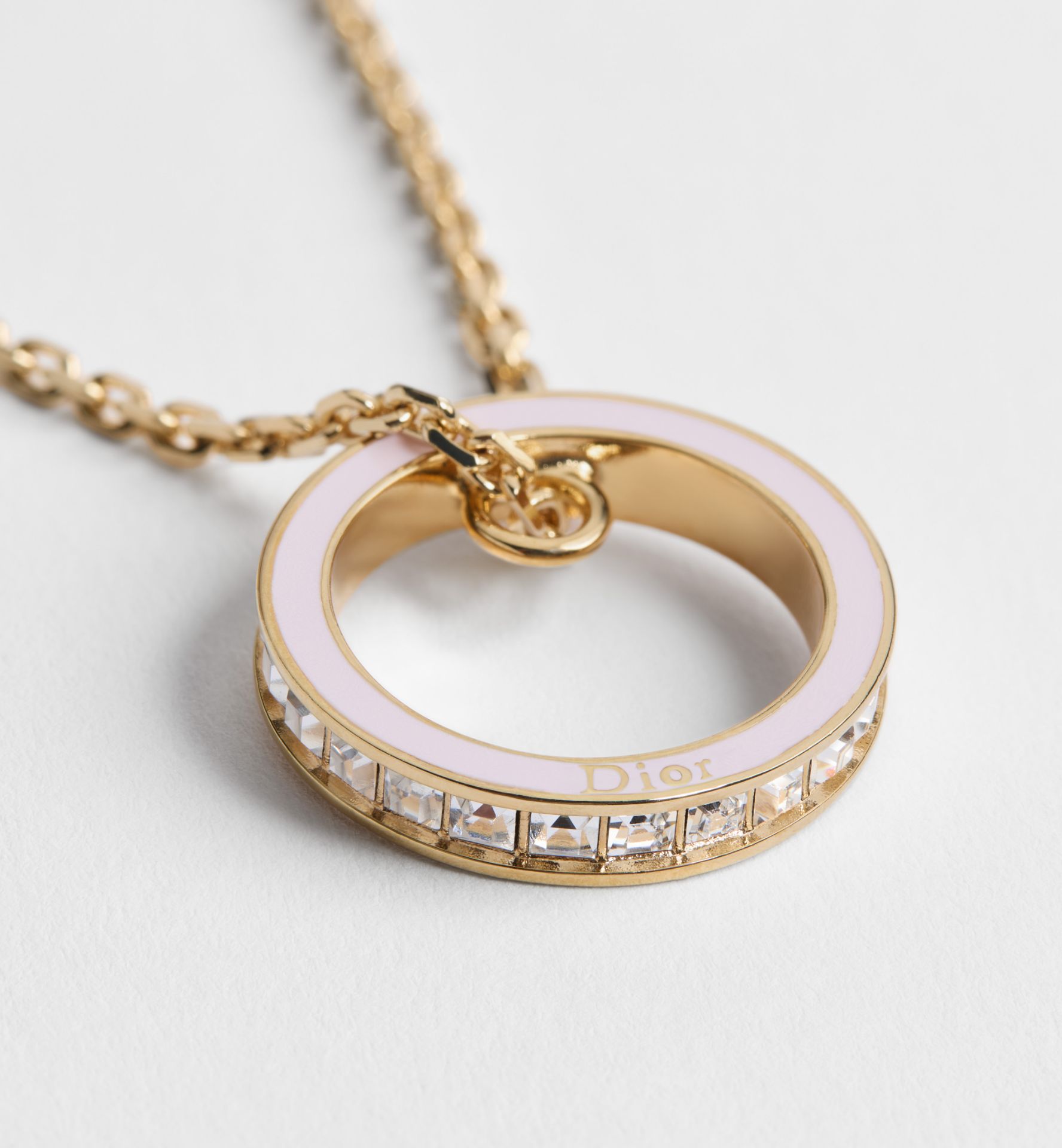 《在台現貨最低特價 最新》Dior Night Code 項鍊 金色飾面金屬、水晶和夢幻粉色漆面
