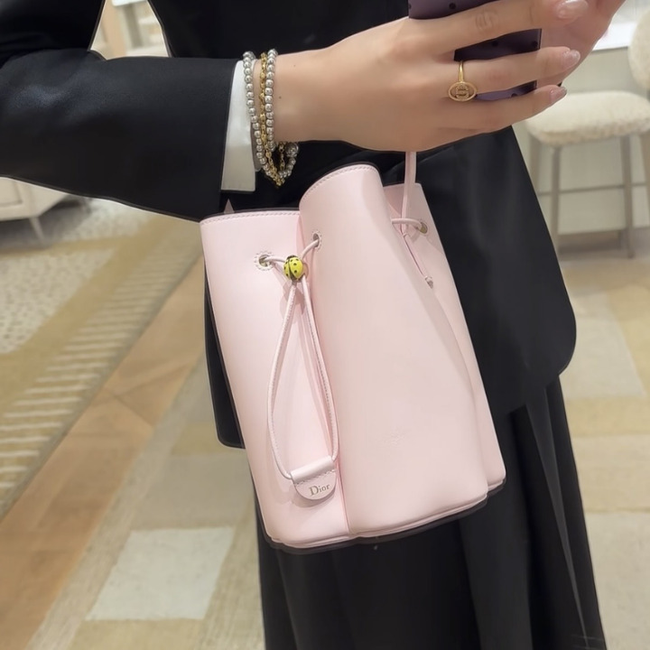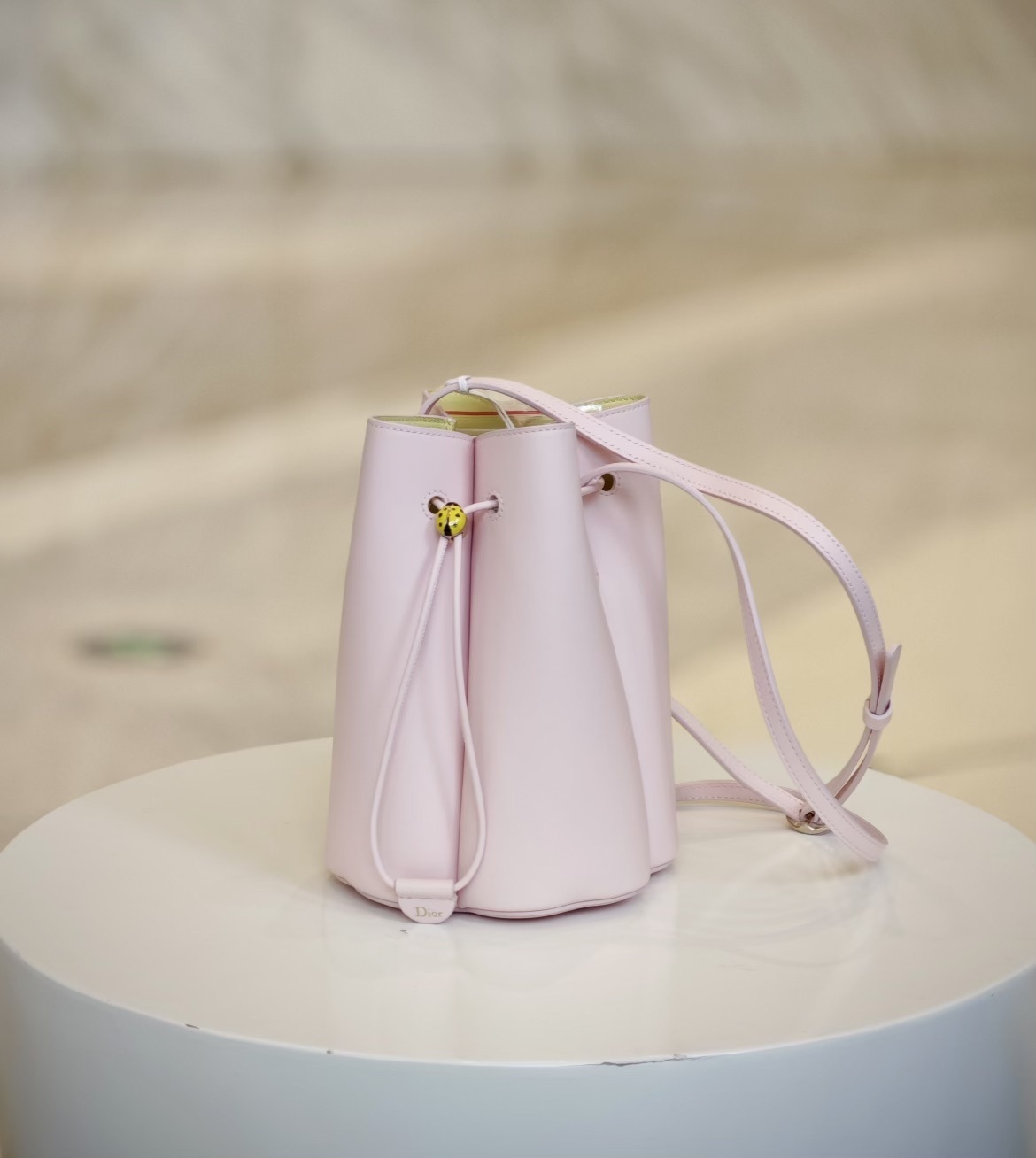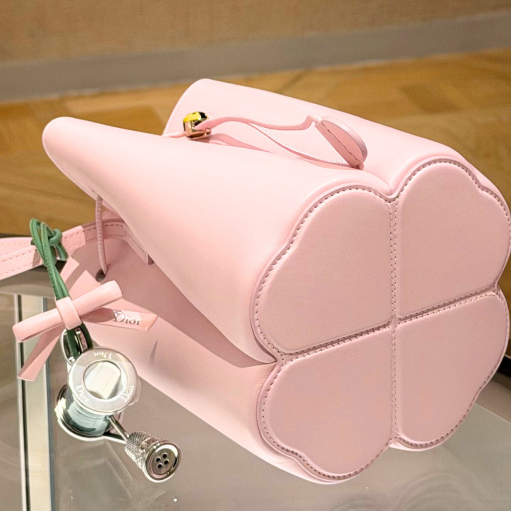 《在台現貨最低特價 最新》Dior Petit Trèfle 花朵水桶包 粉紅色光滑小羊皮