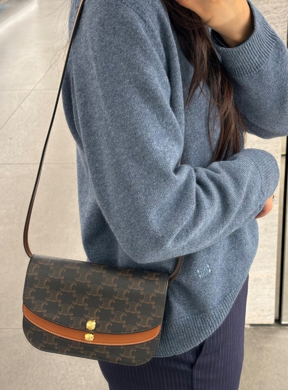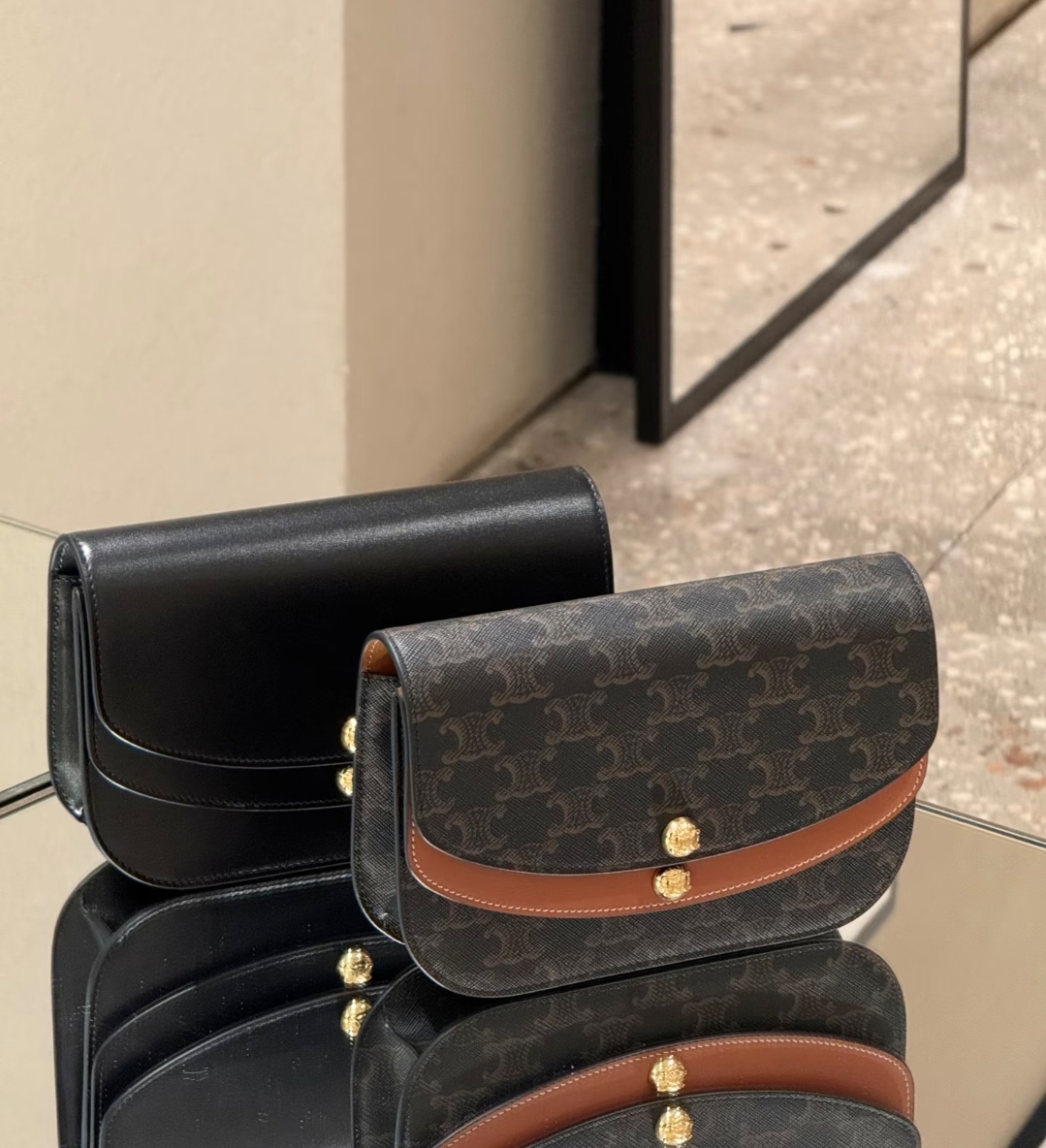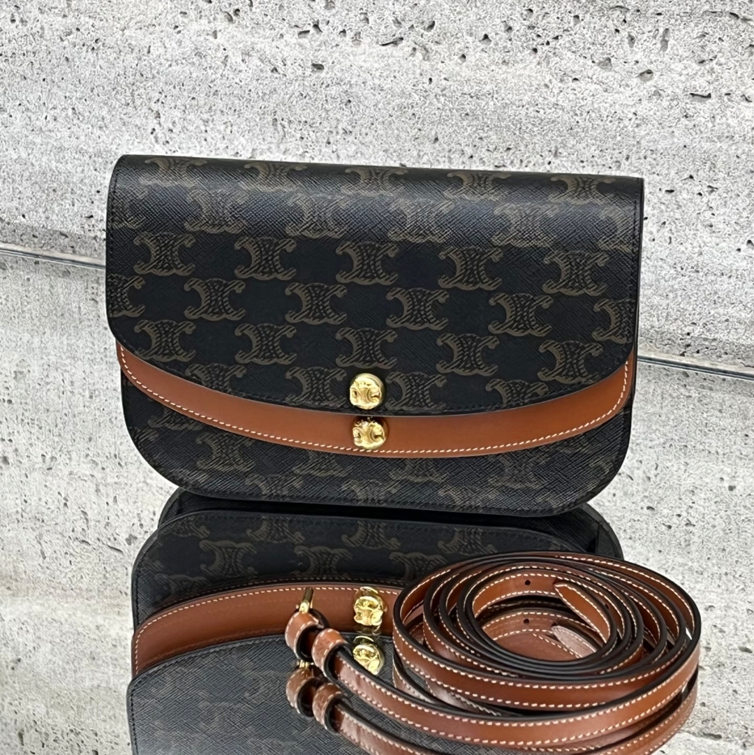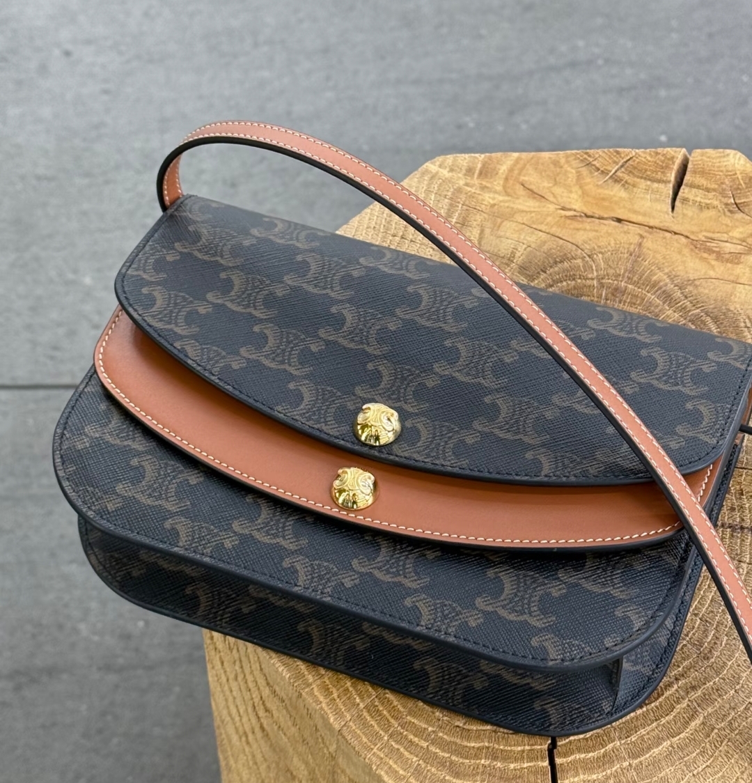 《我最便宜!全新正品》Celine DUO標誌印花及牛皮革飾帶多用途肩背包