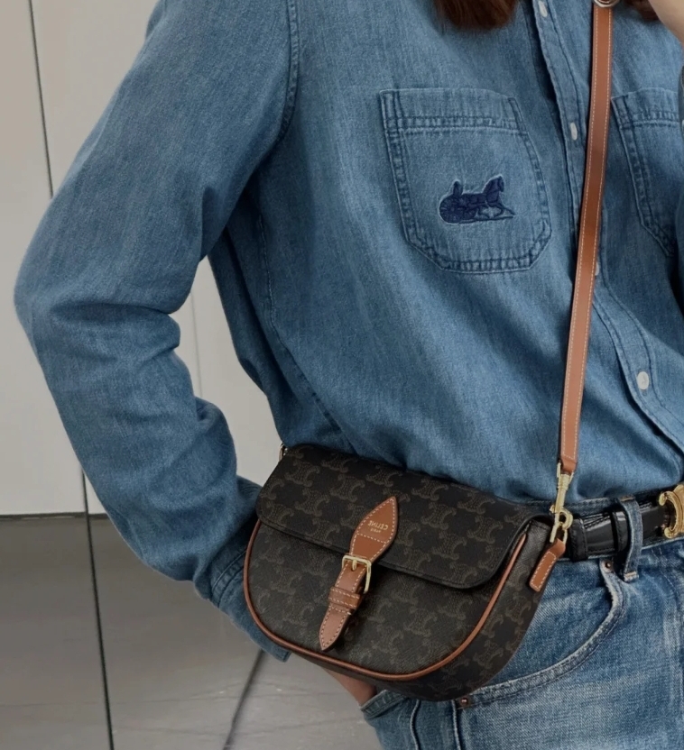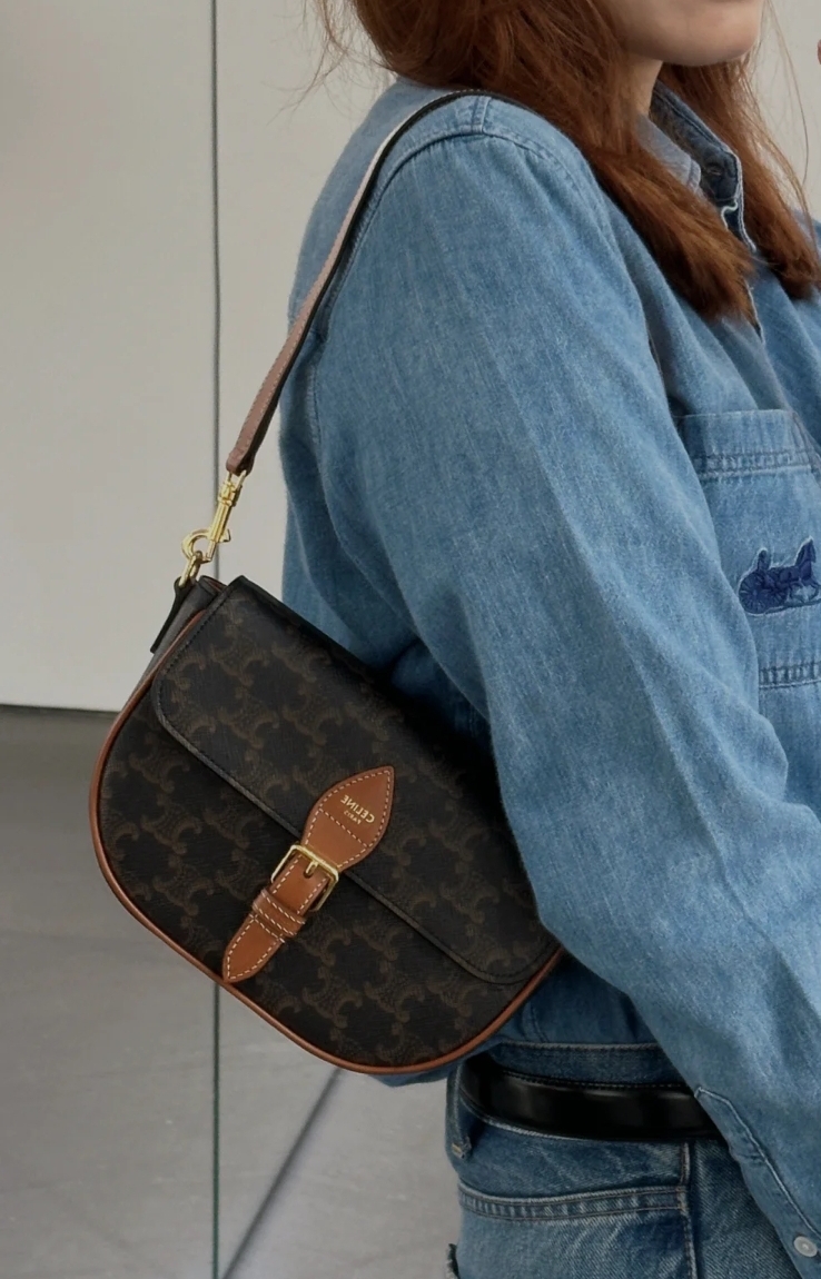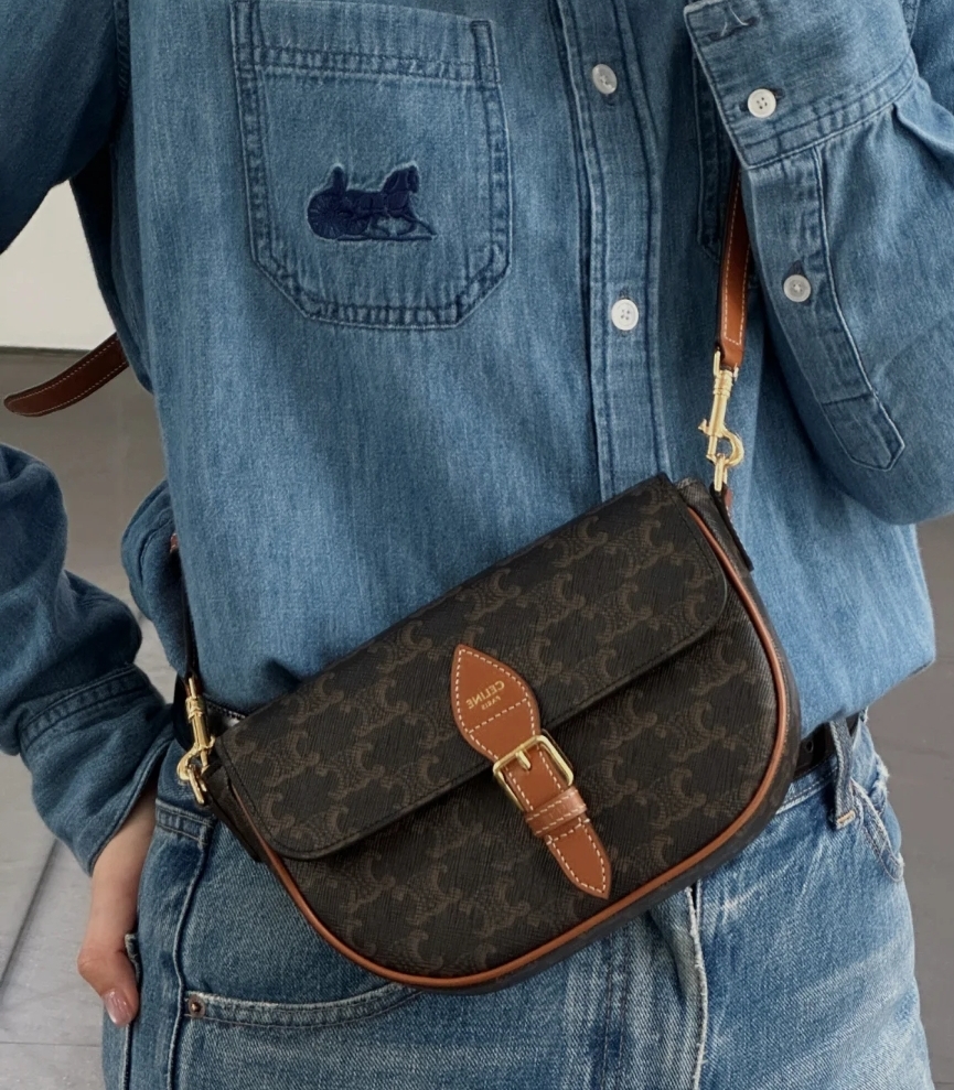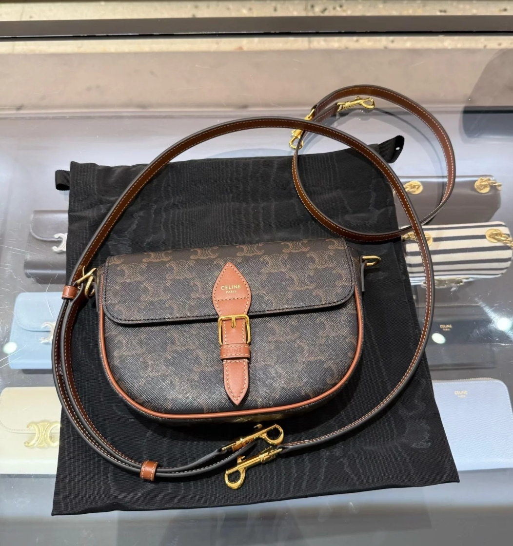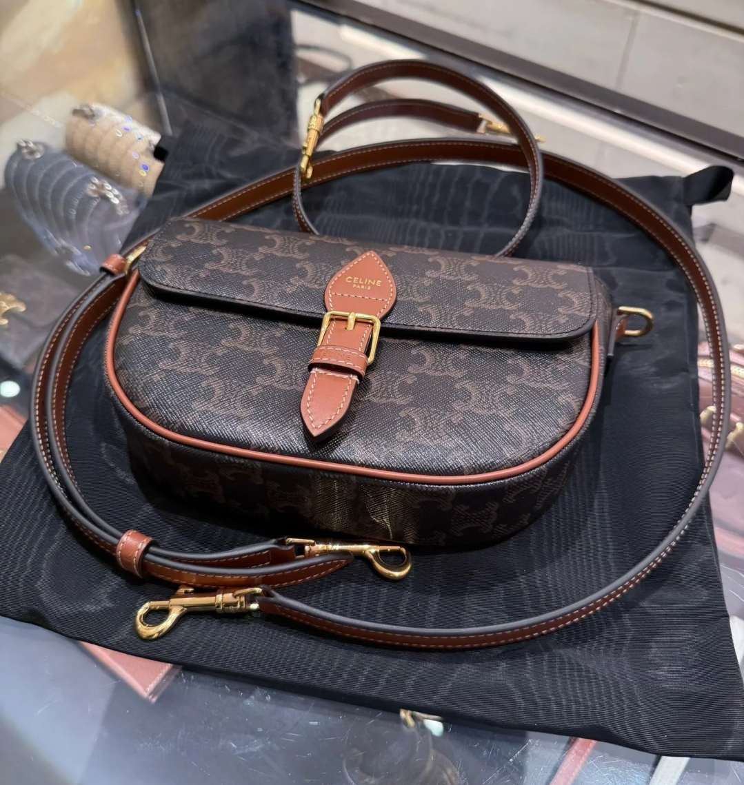 《我最便宜!全新正品》Celine FOLCO標誌印花及牛皮革肩揹袋 (附有兩條背帶)