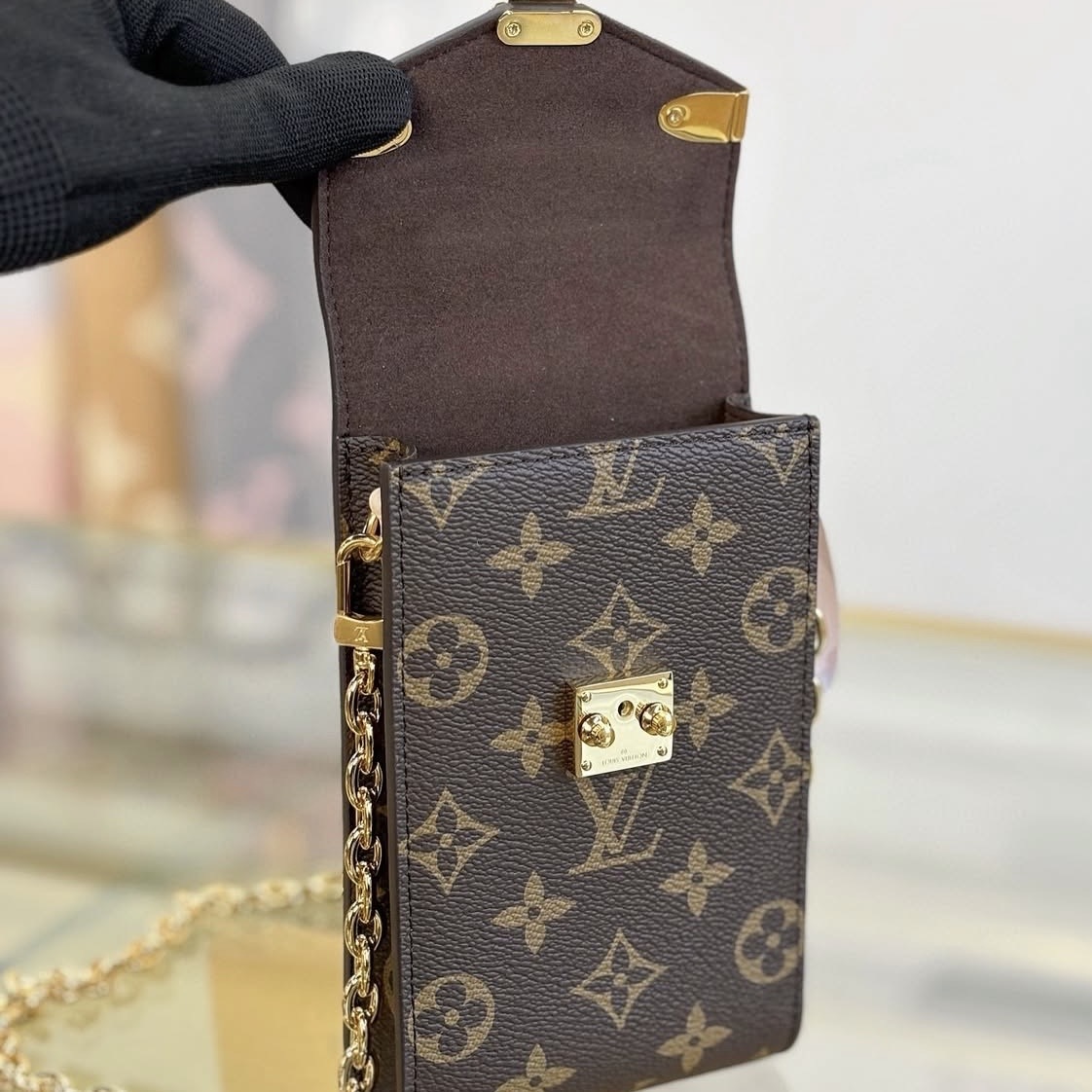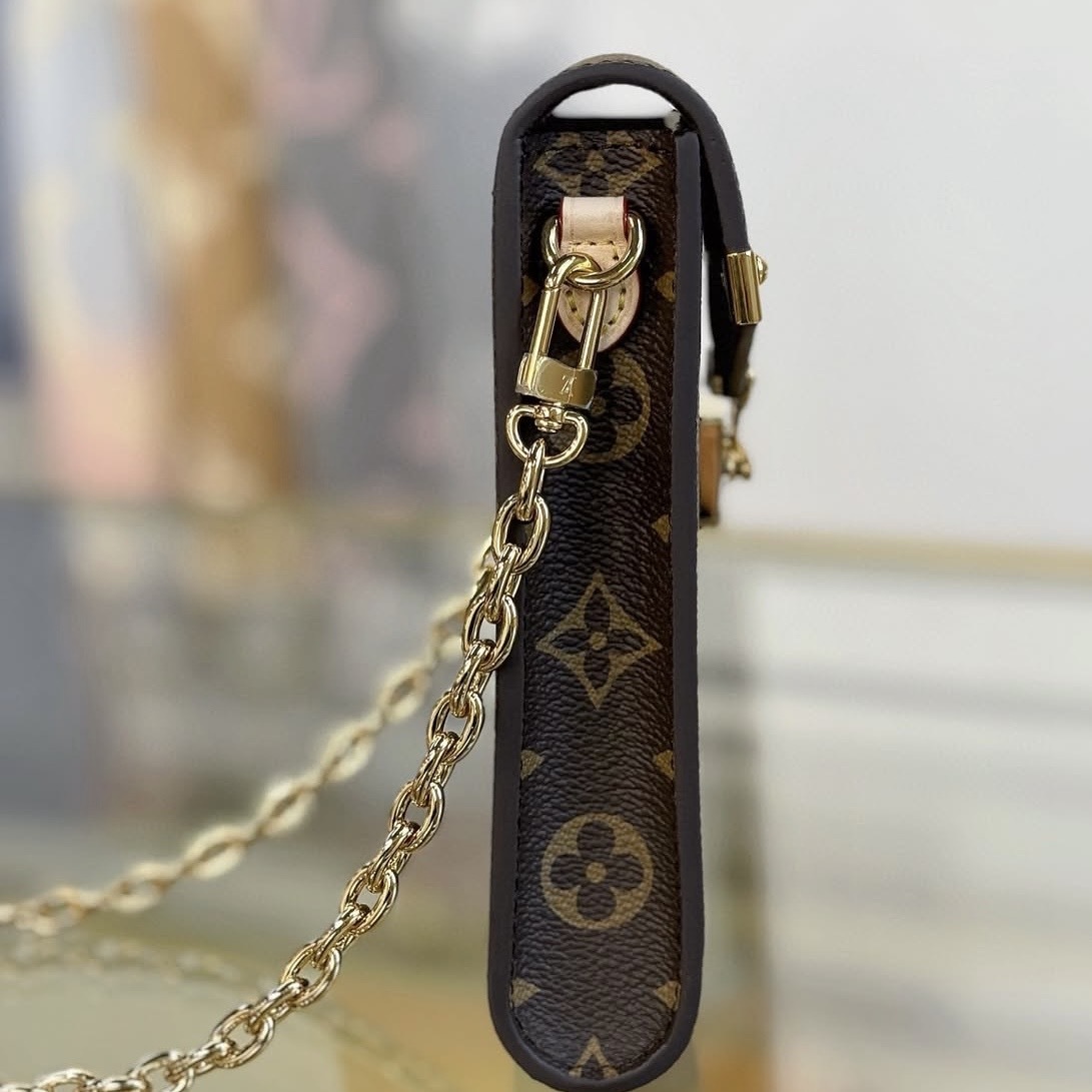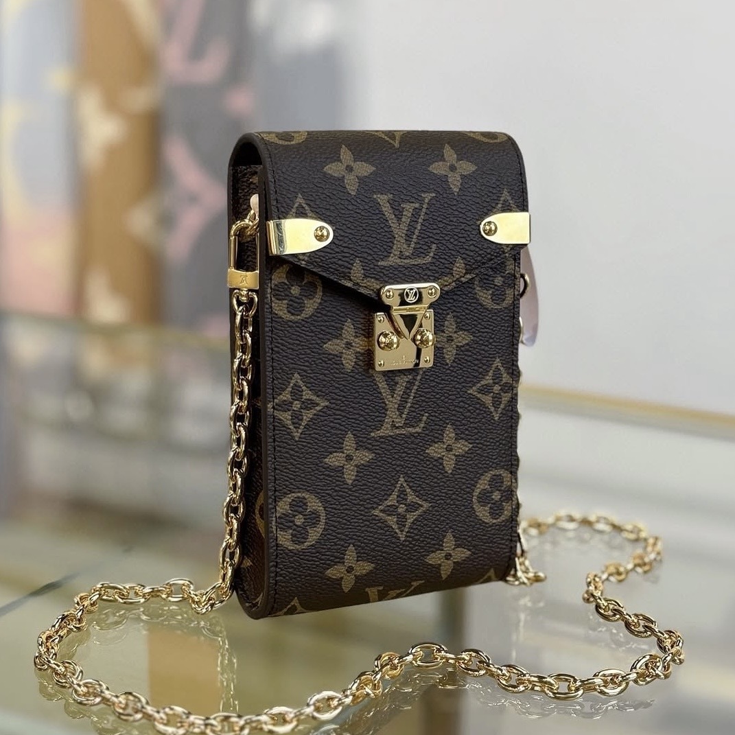 這款Phone Pouch Métis取材自路易威登的復古硬箱,彰顯品牌硬箱製作傳統的精髓。獨特的設計採用單一幅Monogram帆布精心製作,其綴以金色金屬件,包括標誌性的S-lock鎖扣及金屬護角,並配備鏈帶可作免提攜帶。