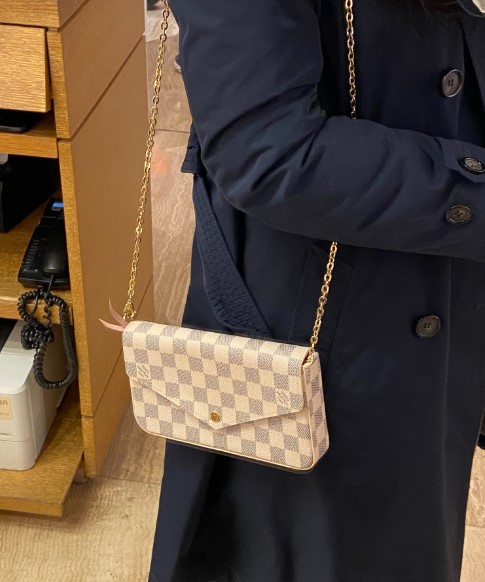 這款Félicie Pochette採用Damier Azur帆布打造,用途靈活多變,完美融入現代生活風格。打開信封式翻蓋即展現寬敞隔層,附有兩個可拆式口袋,包括一個拉鏈口袋及一個配有多個名片夾層的口袋,可供肩背或斜背攜帶,亦可拆下鏈帶作手提包攜帶。