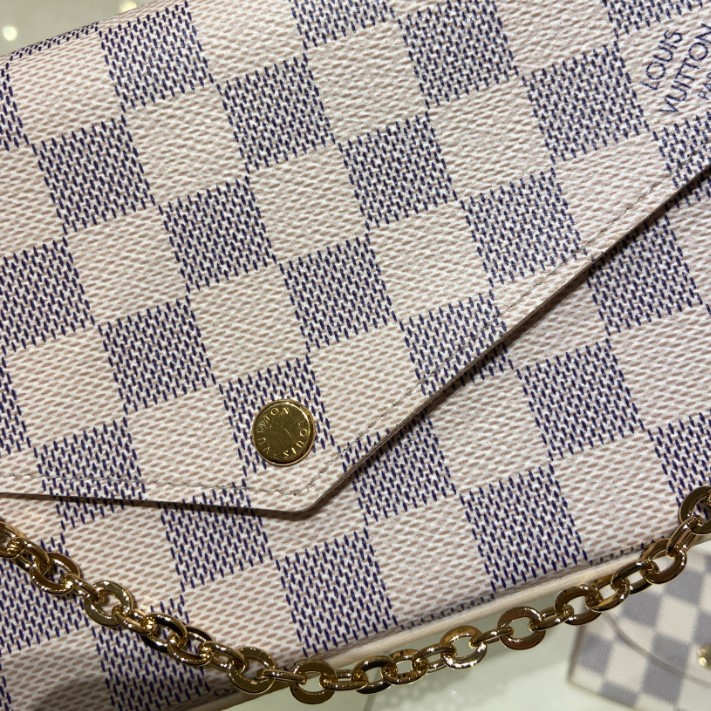 《現貨最低特價 》Louis Vuitton LV Félicie Pochette三合一經典鏈帶包 (Damier Azur)