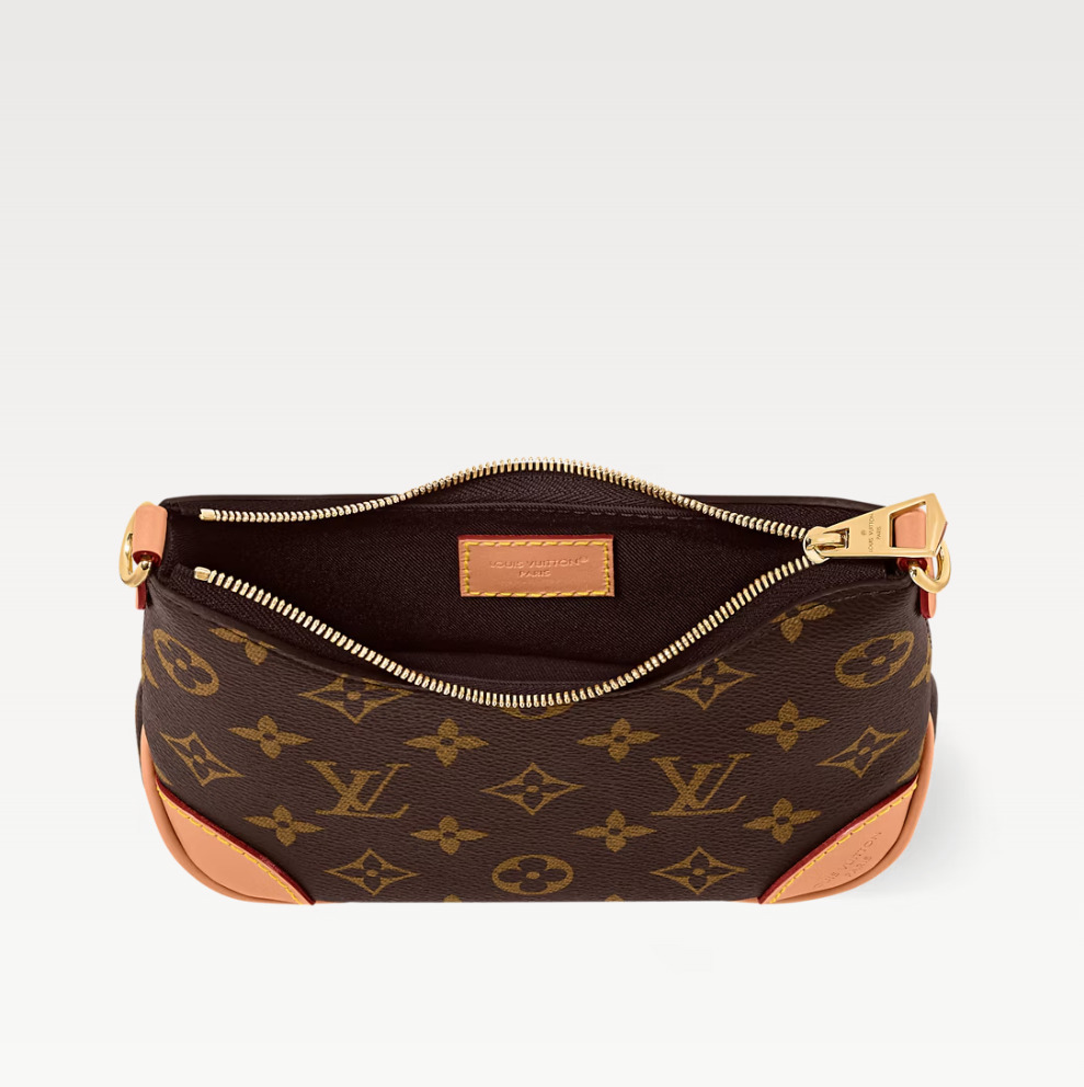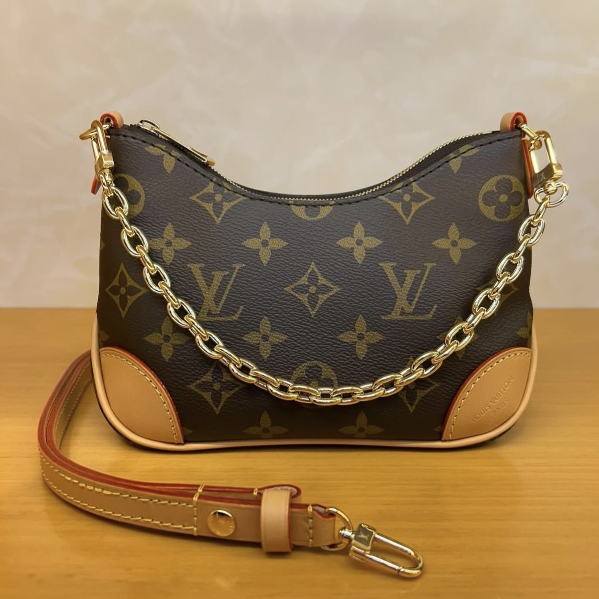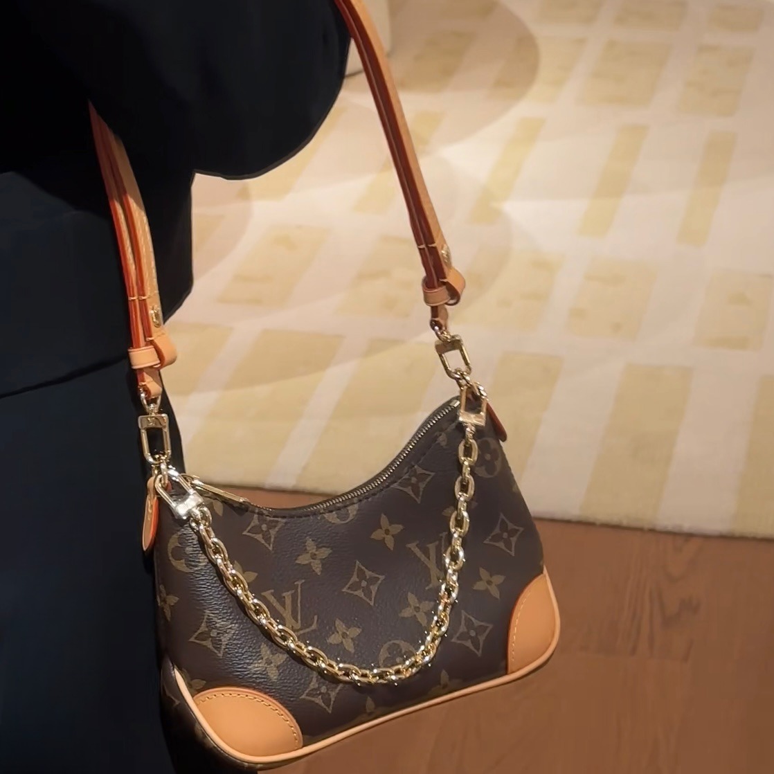 這款Nano Boulogne以標誌性的Monogram帆布打造日夜場合皆宜的季節性袋型,向品牌的標誌性傳統致敬。款式飾有對比鮮明的皮革飾邊,並以可按個人喜好拆除的金色鏈條完美點綴。這款包包尺寸小巧卻格外實用,能容納各種日常必需品,並可作多種不同方式攜帶。