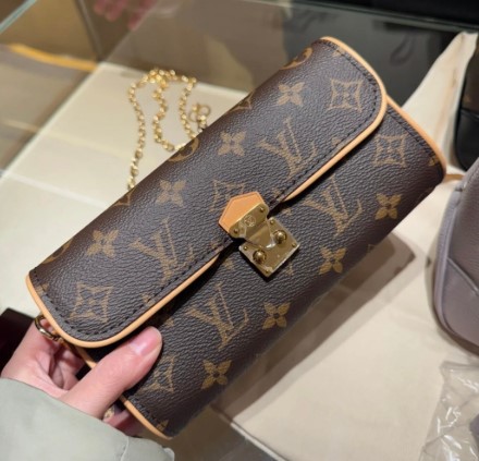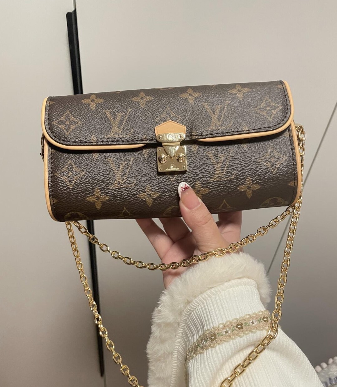 這款Pochette Camille以Monogram帆布製造,向品牌2000年春夏系列時裝展首度登場的原版設計致敬。手袋配備多個經典細節,包括標誌性的S-Lock鎖扣設計、鏈帶上的LV Circle標誌,還有對比色的VVN皮革飾邊。這款多用途手袋可作斜背、肩背或手提攜帶。