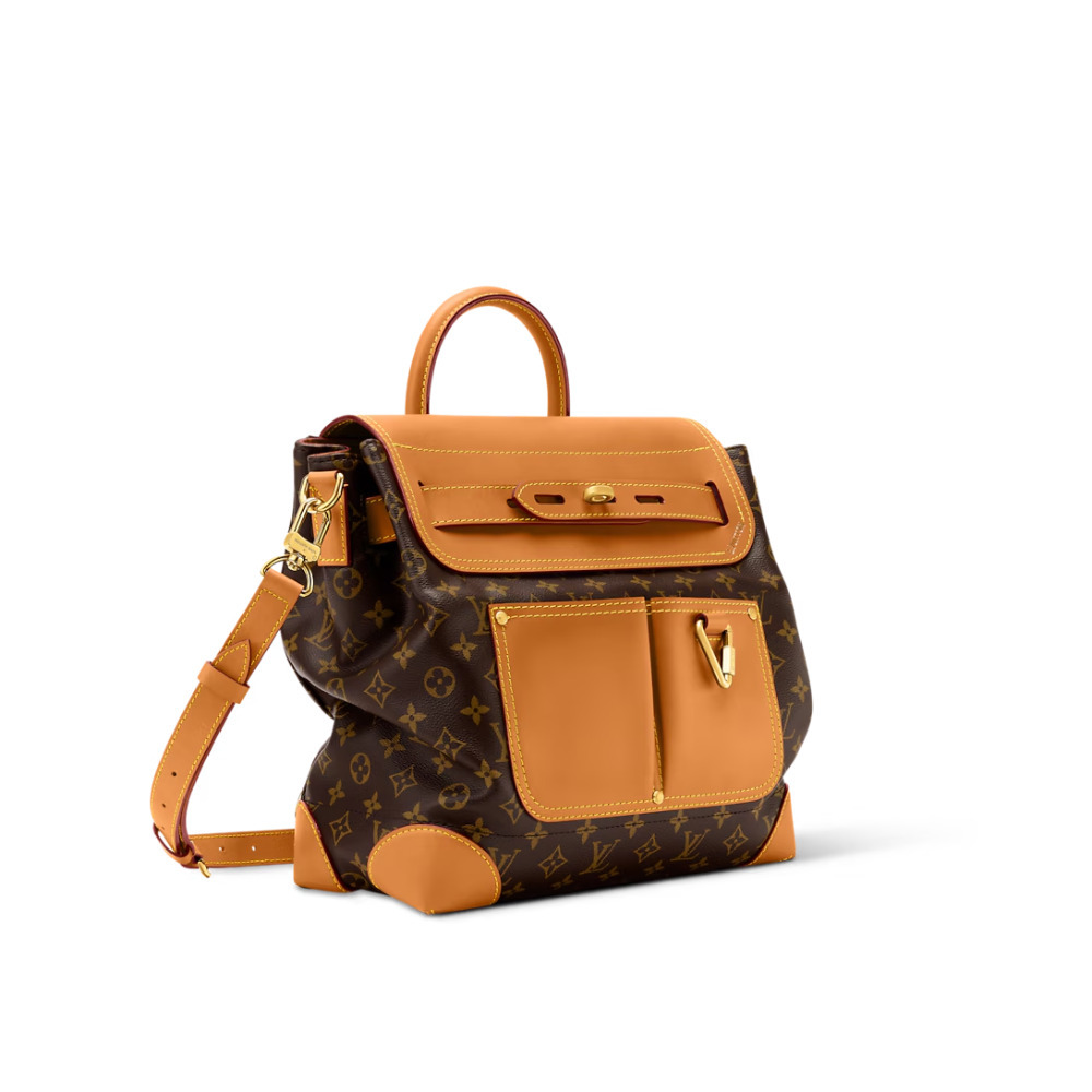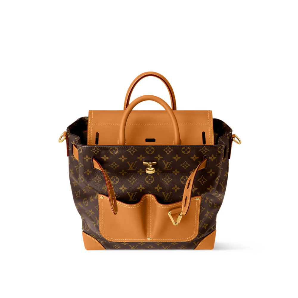 Pharrell Williams以Monogram帆布重新演繹Steamer 30包包,袋身正面配有兩個外置口袋,為精緻經典的設計注入工裝風格。百搭時尚的包包配備配有肩帶和袋蓋,可締造多種不同造型,包括斜背、肩背、手提,把可拆式肩帶安裝至背面,還可作後背包攜帶。