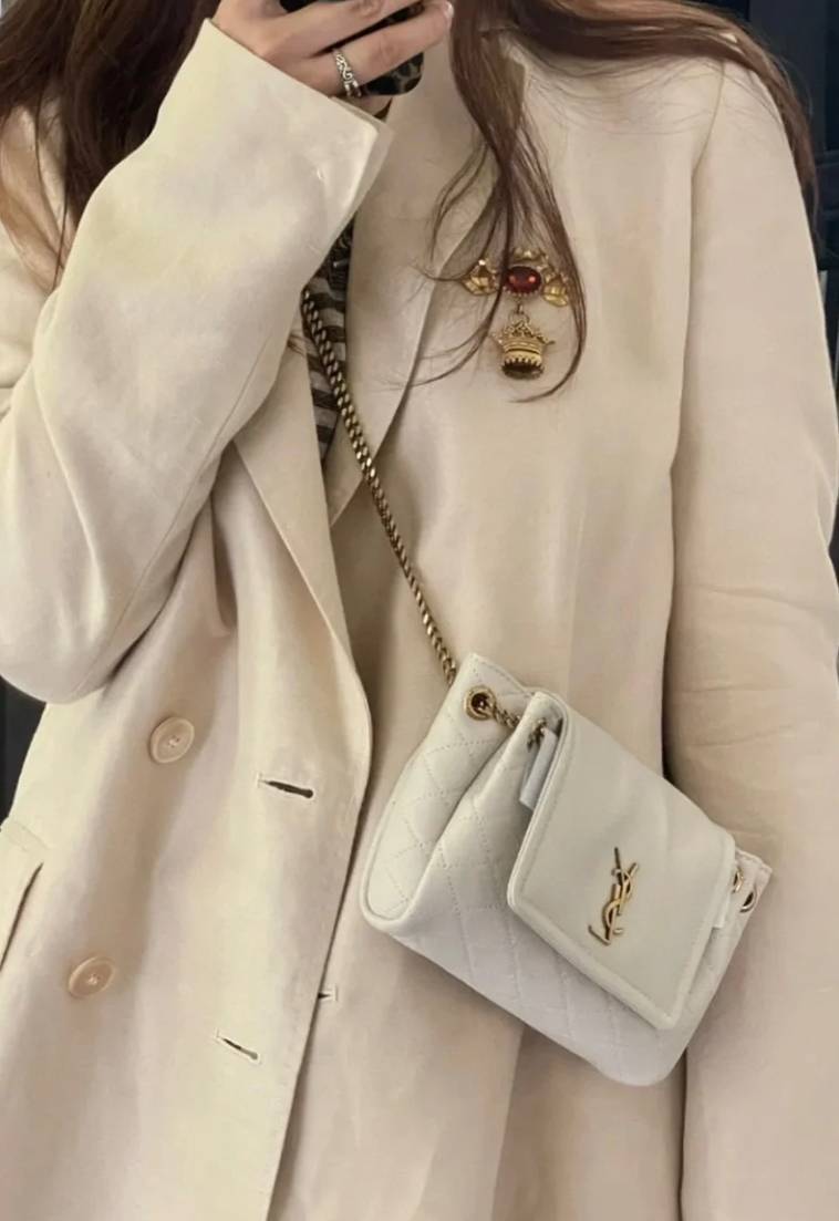 《現貨2~3日可收到! 》 SAINT LAURENT YSL Nolita小羊皮鏈袋包 (復古白色)