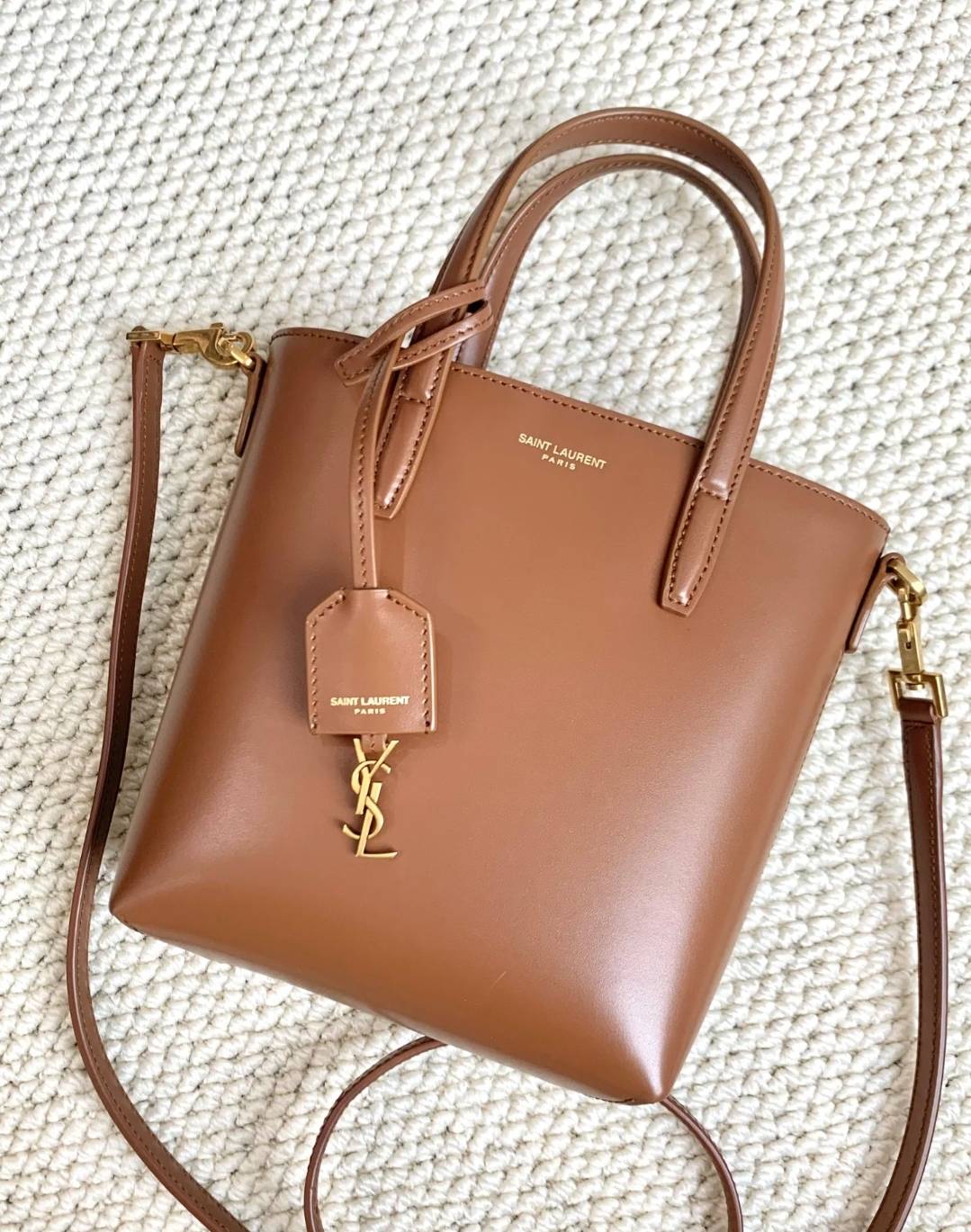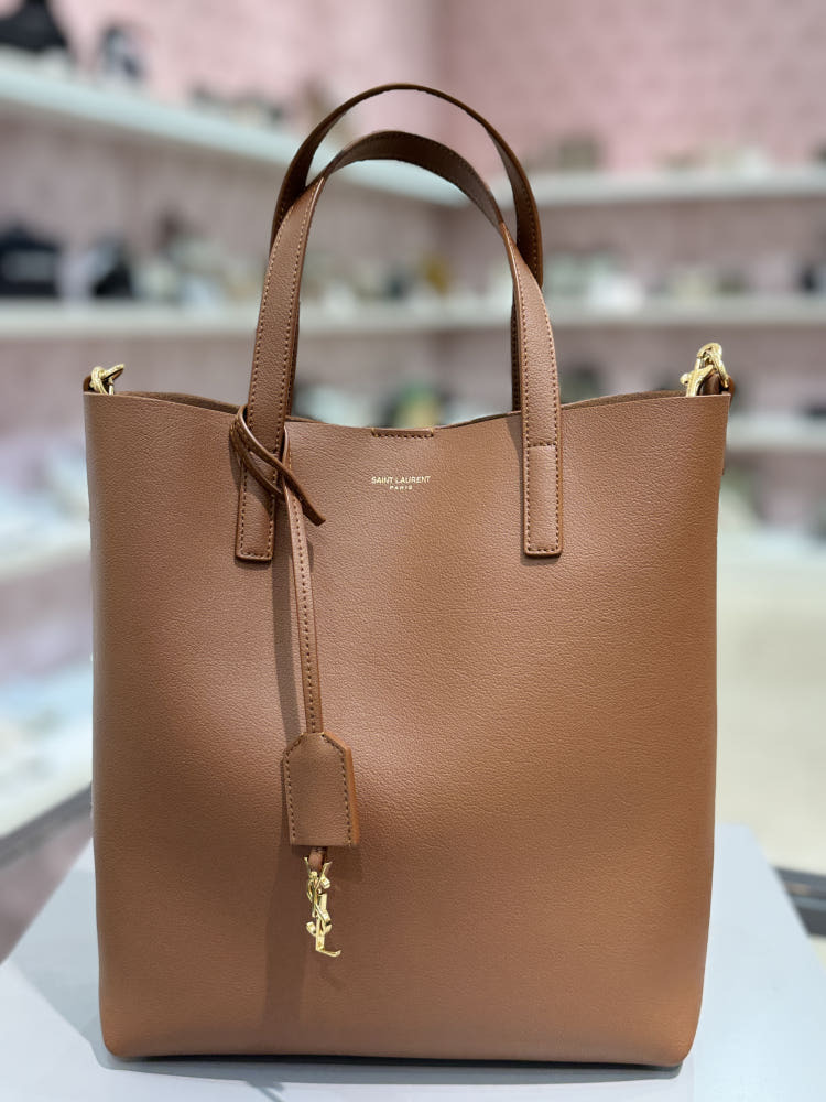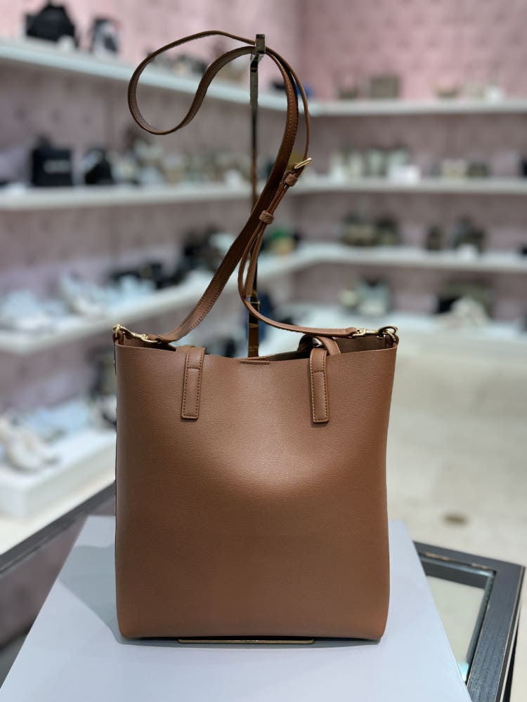 《現貨2~3日可收到! 》 SAINT LAURENT YSL PETIT CABAS TOY 豎款皮革手提肩背包 紅棕色