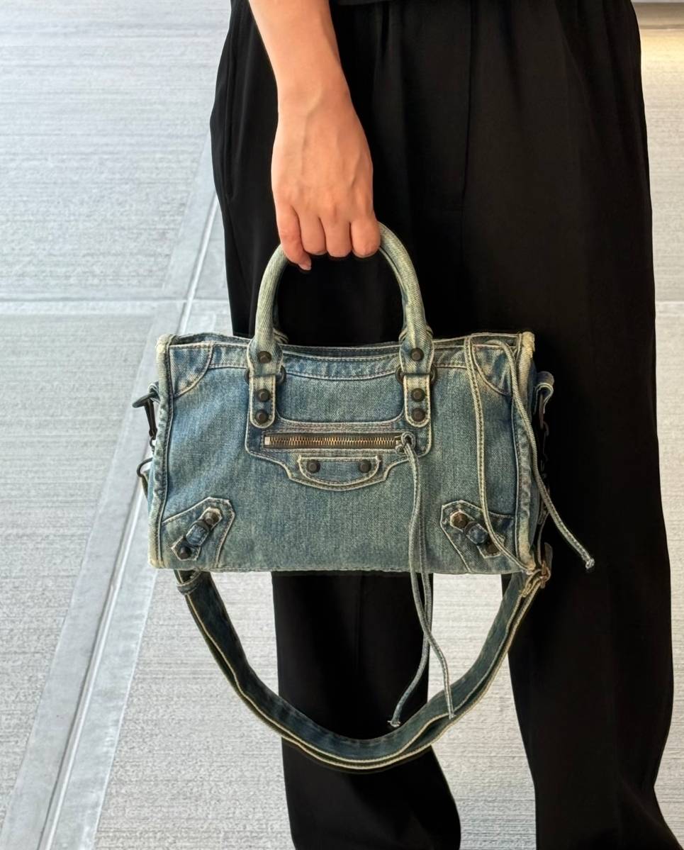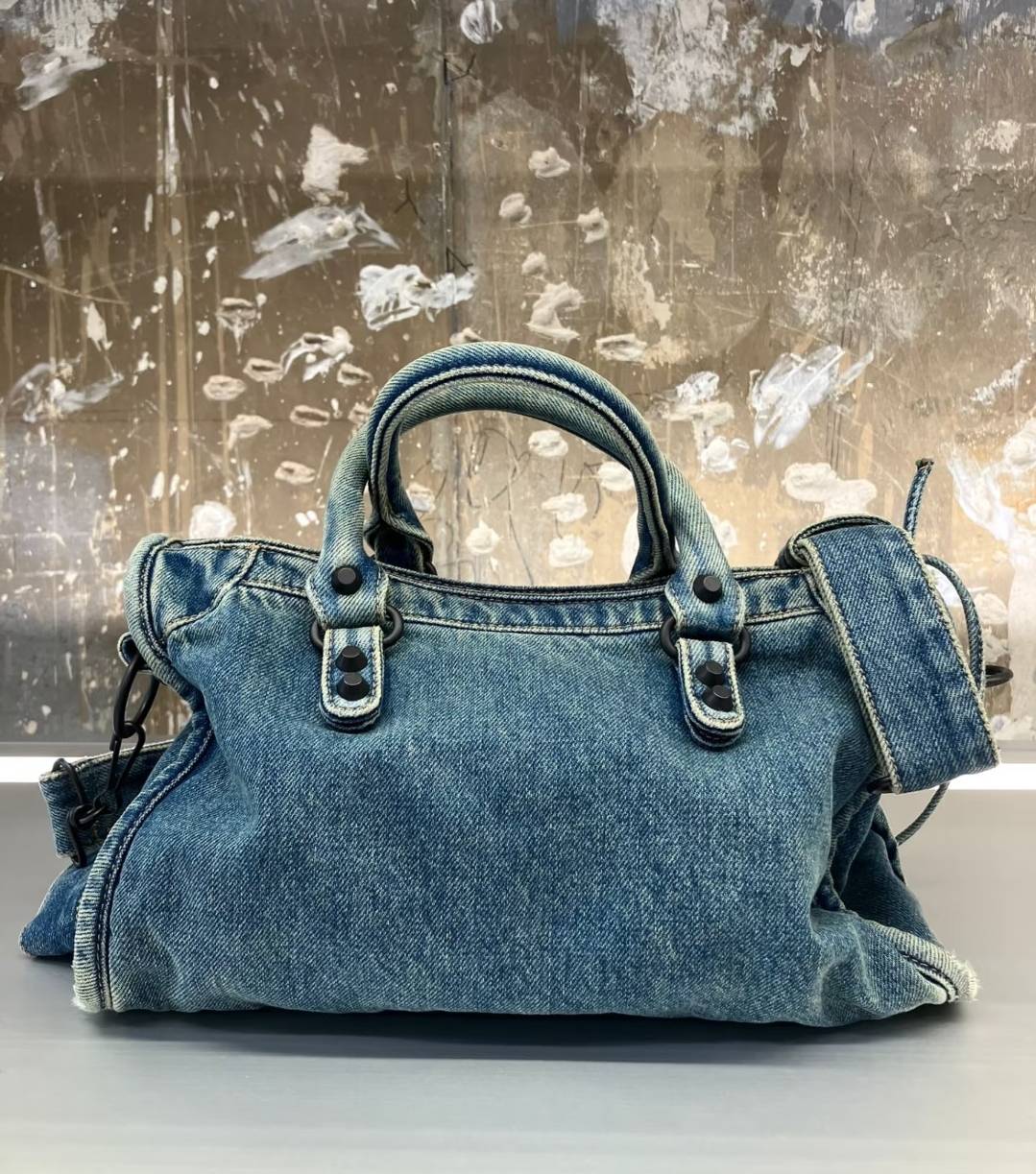 《限量最低折扣!全新正品》Balenciaga Le City 藍色水洗牛仔機車包