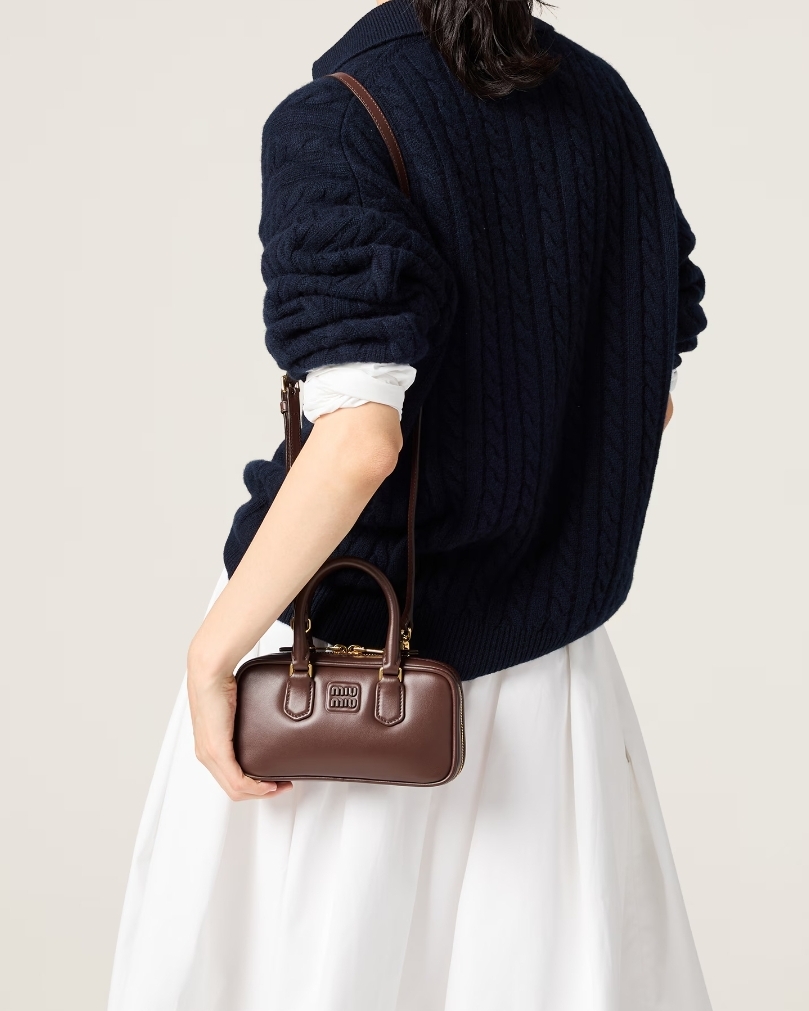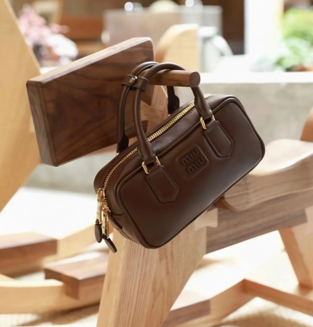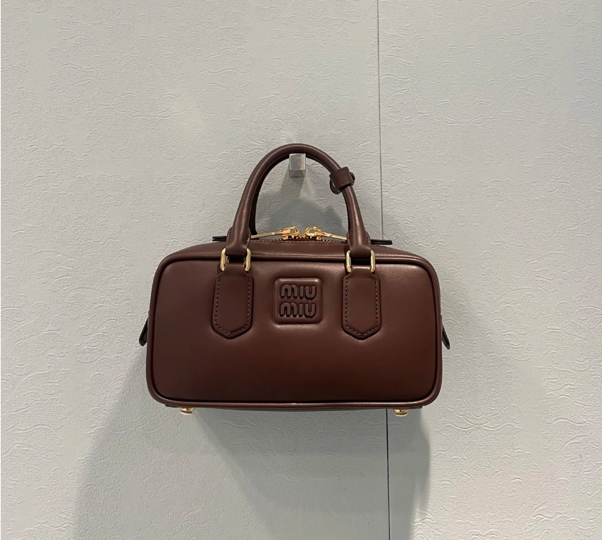 《限量最低折扣!全新正品》miumiu Arcadie 皮革迷你手提肩背包 石南木色