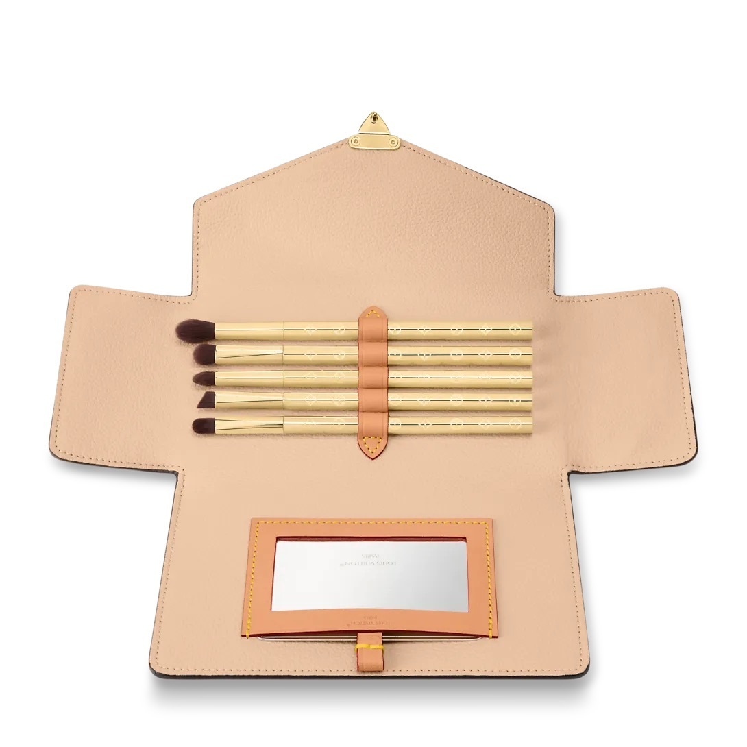 這款唇刷及眼影刷套裝經過精心設計,細節之處一絲不苟,備有五款精緻的化妝工具,以勾勒、塑造及提升眼部和唇部的妝感,打造完美精準的妝容。這個不可缺少的系列能打造出精緻妝容,內附獨有的精準暈染掃及唇刷。套裝配以經典Monogram收納包,內部採用可洗塗層帆布襯裡,並內置鏡子。每款化妝掃均採用環保的合成纖維刷毛製成,金色金屬手柄綴以典雅的品牌標誌鐫刻圖案,結合實用功能和品牌的傳統精緻風格。