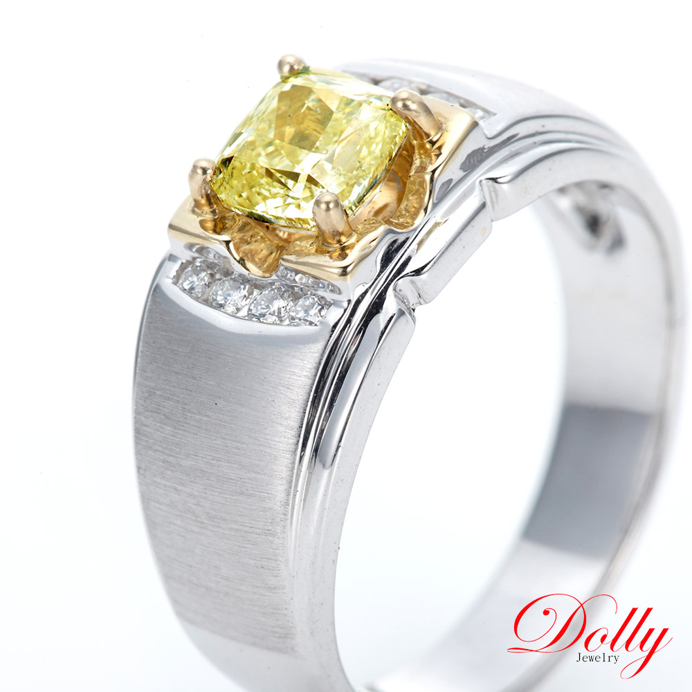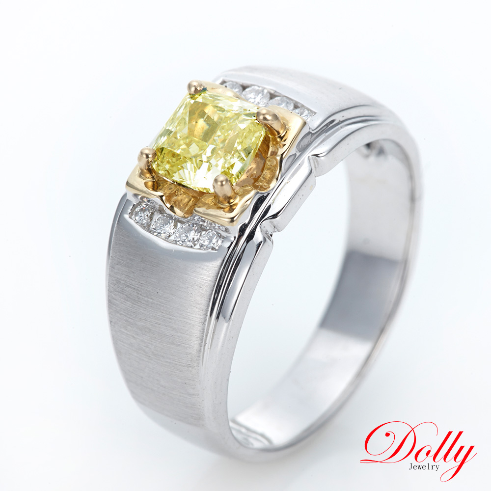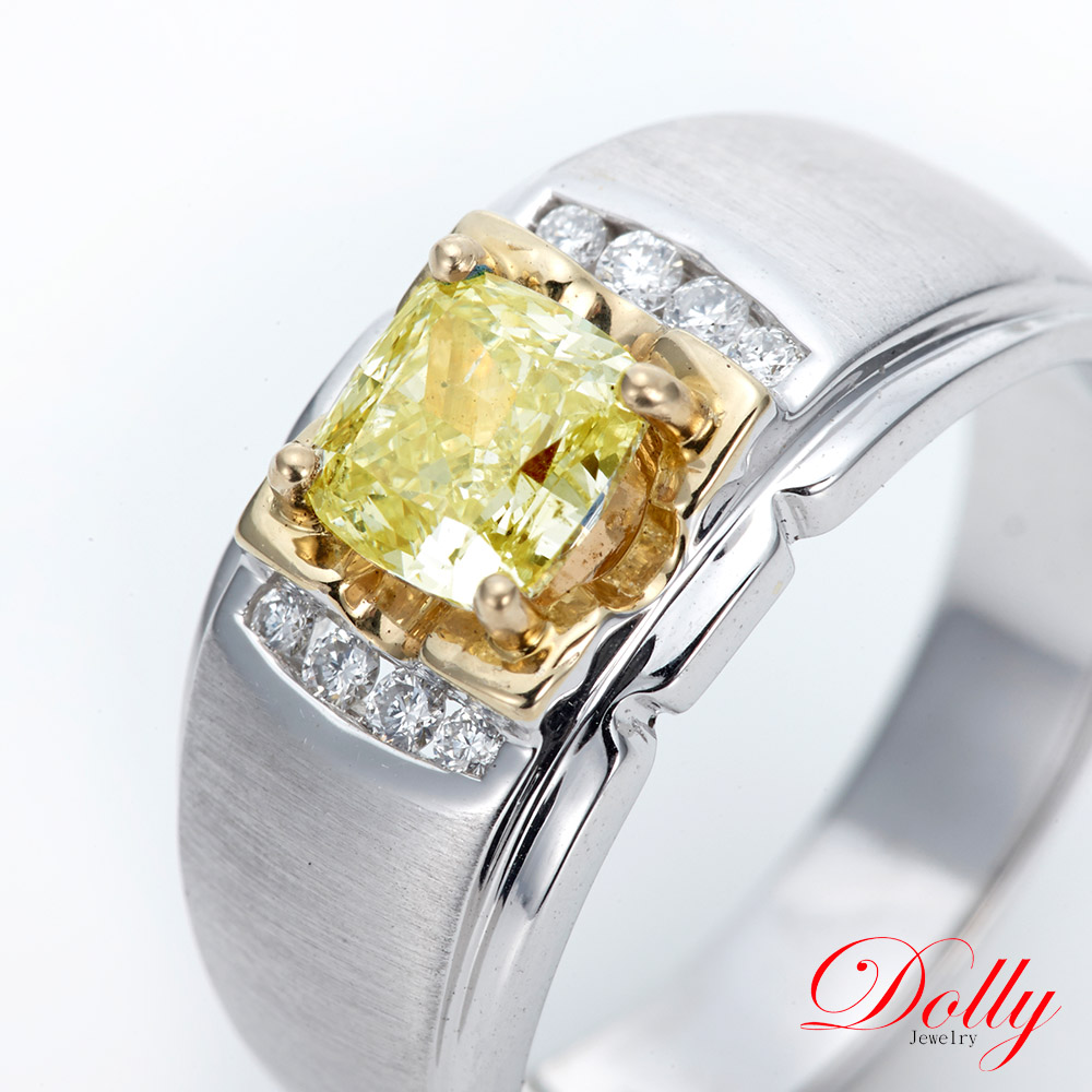 雙11 14K金 GIA1克拉天然黃彩Fancy Yellow鑽石男戒