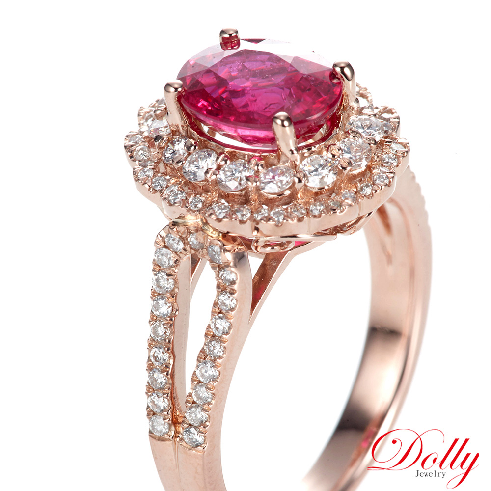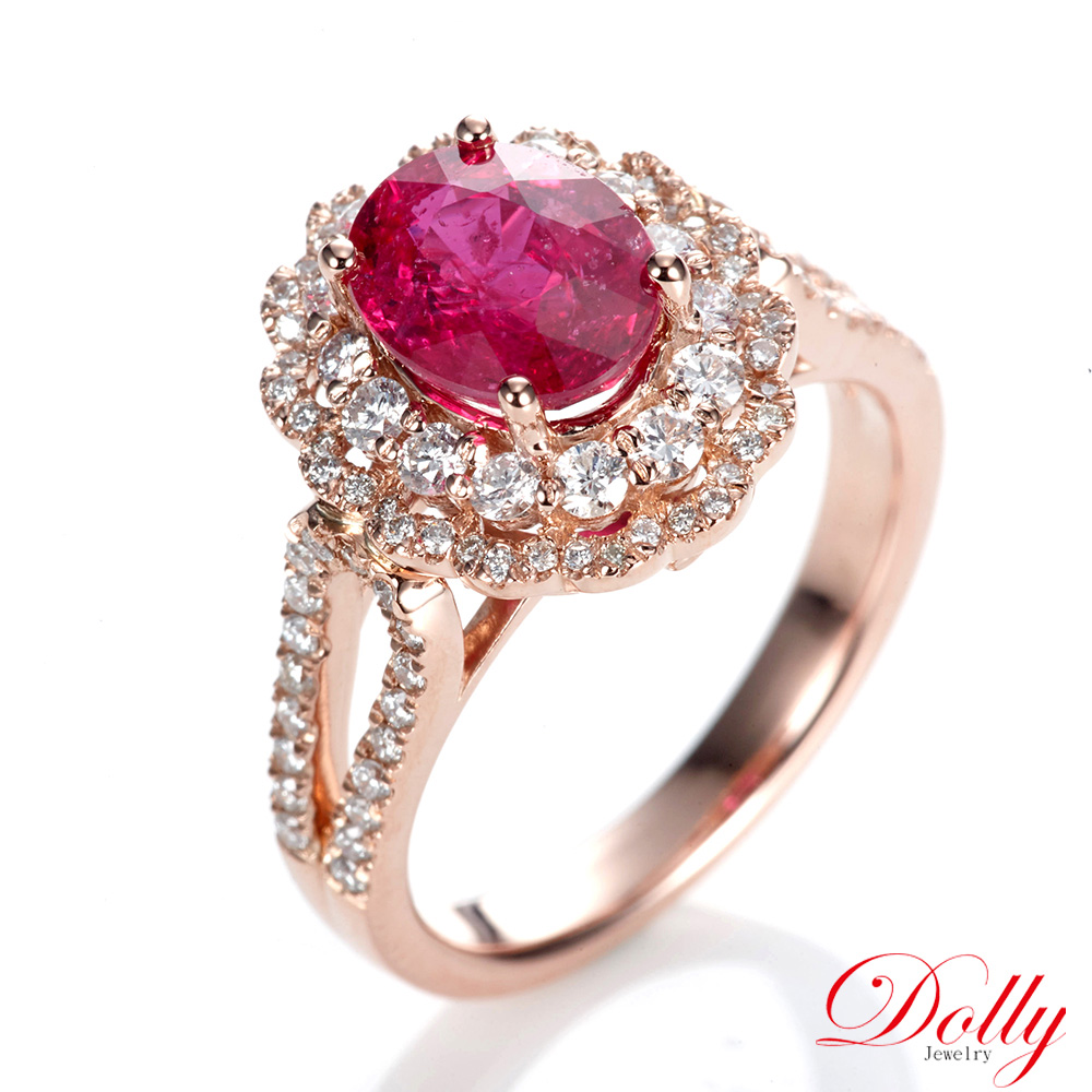 雙11 18K金 無燒紅寶石2克拉玫瑰金鑽石戒指-005