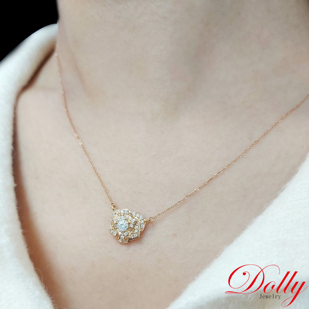 雙11 18K金 0.10克拉完美車工玫瑰金鑽石項鍊-005