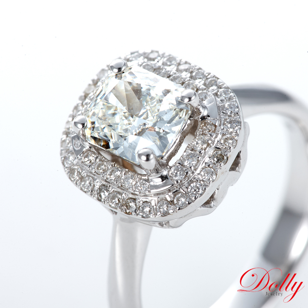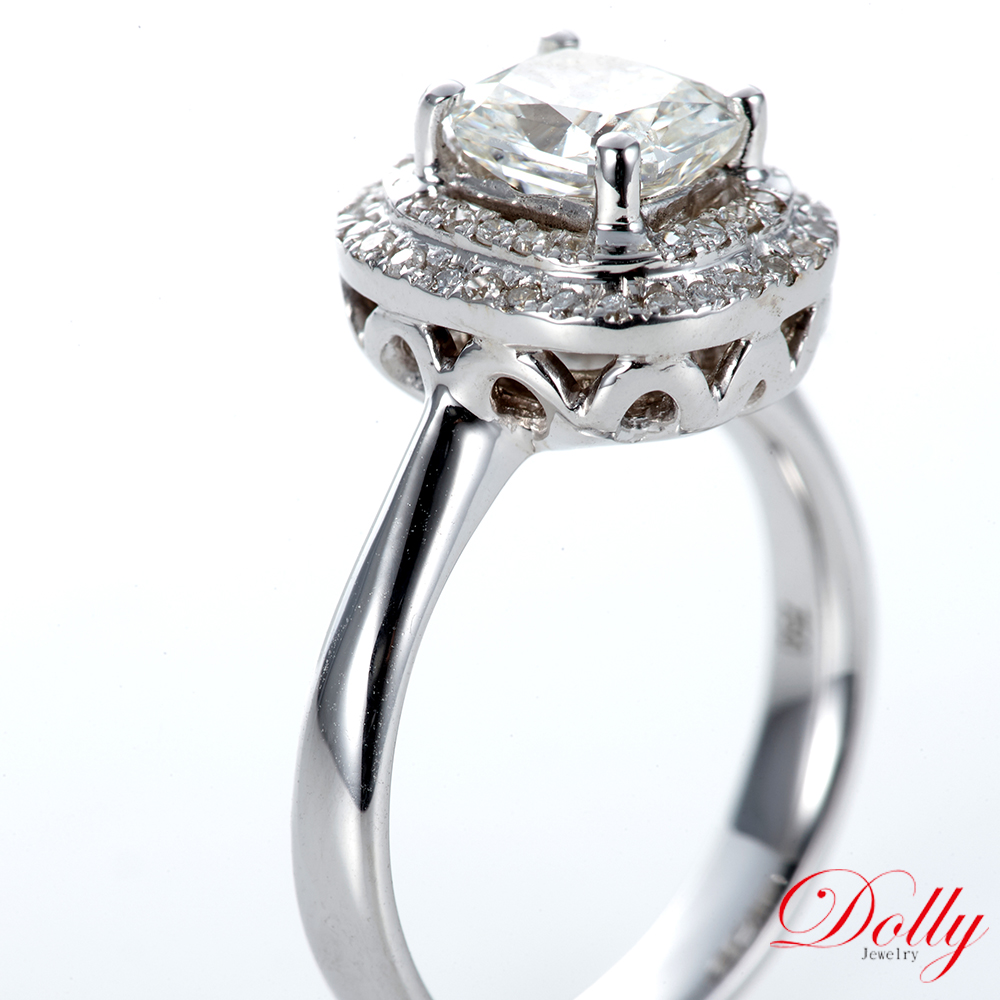 雙11 18K金 1克拉F/VVS1枕型車工求婚鑽石戒指-005
